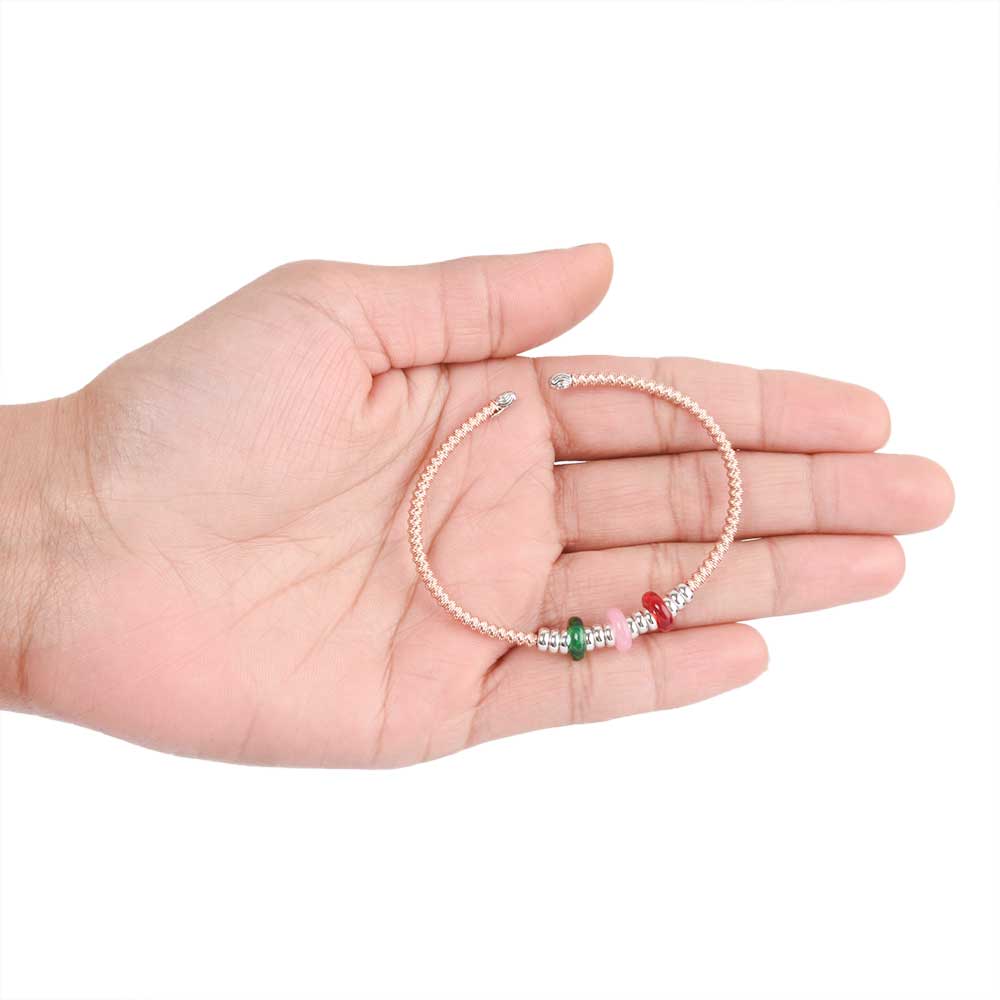 • Multicolored Beaded Gold Plated Adjustable Rope Design 92.5 Silver Bracelet