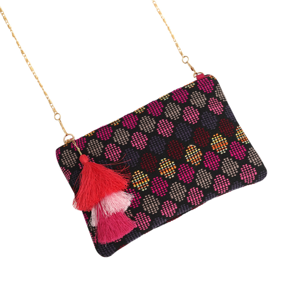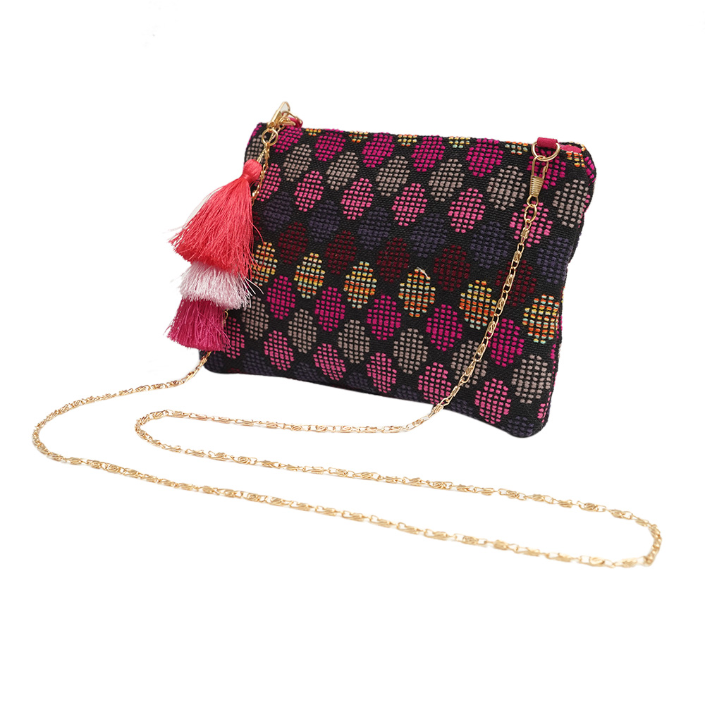 Our beautiful cross body handbag is a must-have accessory for any woman's wardrobe. Handcrafted by professional craftsmen using high-quality cotton, this bag is not only durable but also adorned with stunning multi-coloured engravings, making it a luxurious addition to your collection of mini bags for women. It's roomy enough to hold all your essentials, including your phone, wallet, keys, and makeup, making it an ideal option for both office and casual wear. This bag is also an excellent choice for those looking for luxury bags for women, crafted with attention to detail and designed to elevate any outfit. The cotton material adds to the bag's durability and makes it a perfect option for those looking for canvas bags for women. Whether for yourself or as a gift for a loved one, this cross body bag is sure to impress. Don't miss out on this beautiful piece of fashion!