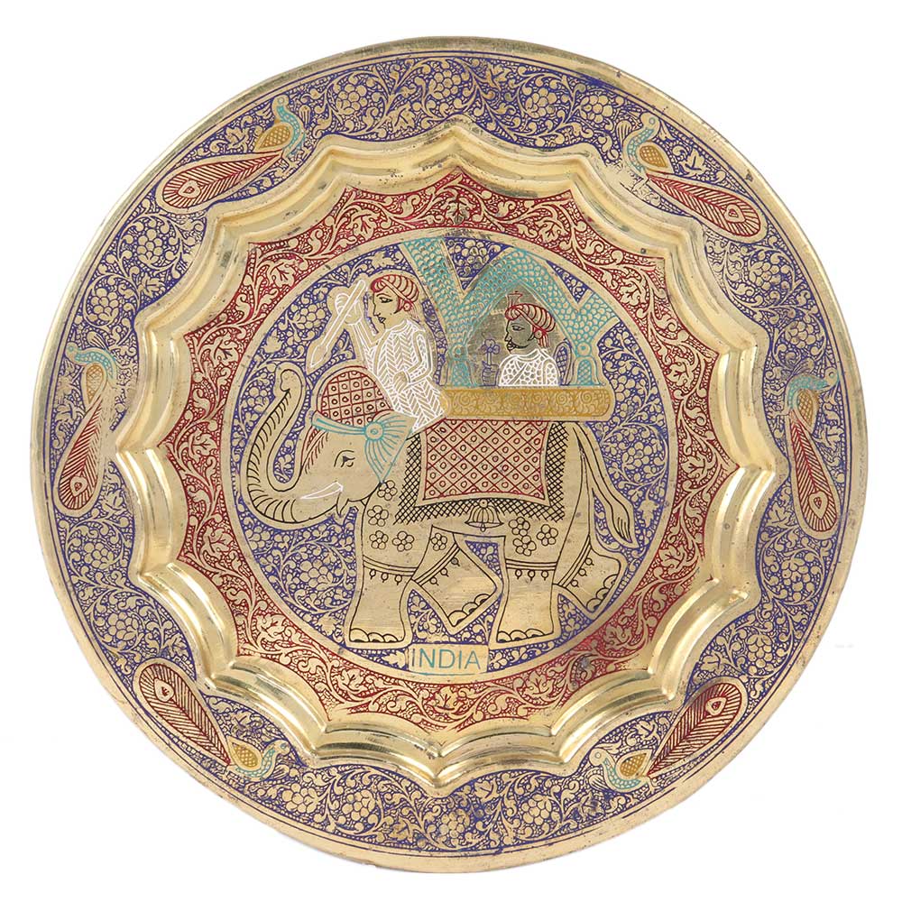 Handcrafted enamel colored brass inlaid work plate can be used as a decoration on any wall. Get this ornamental plate for your home decor and add a touch of royalty to your space.