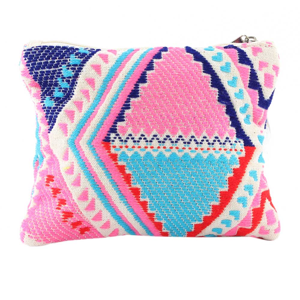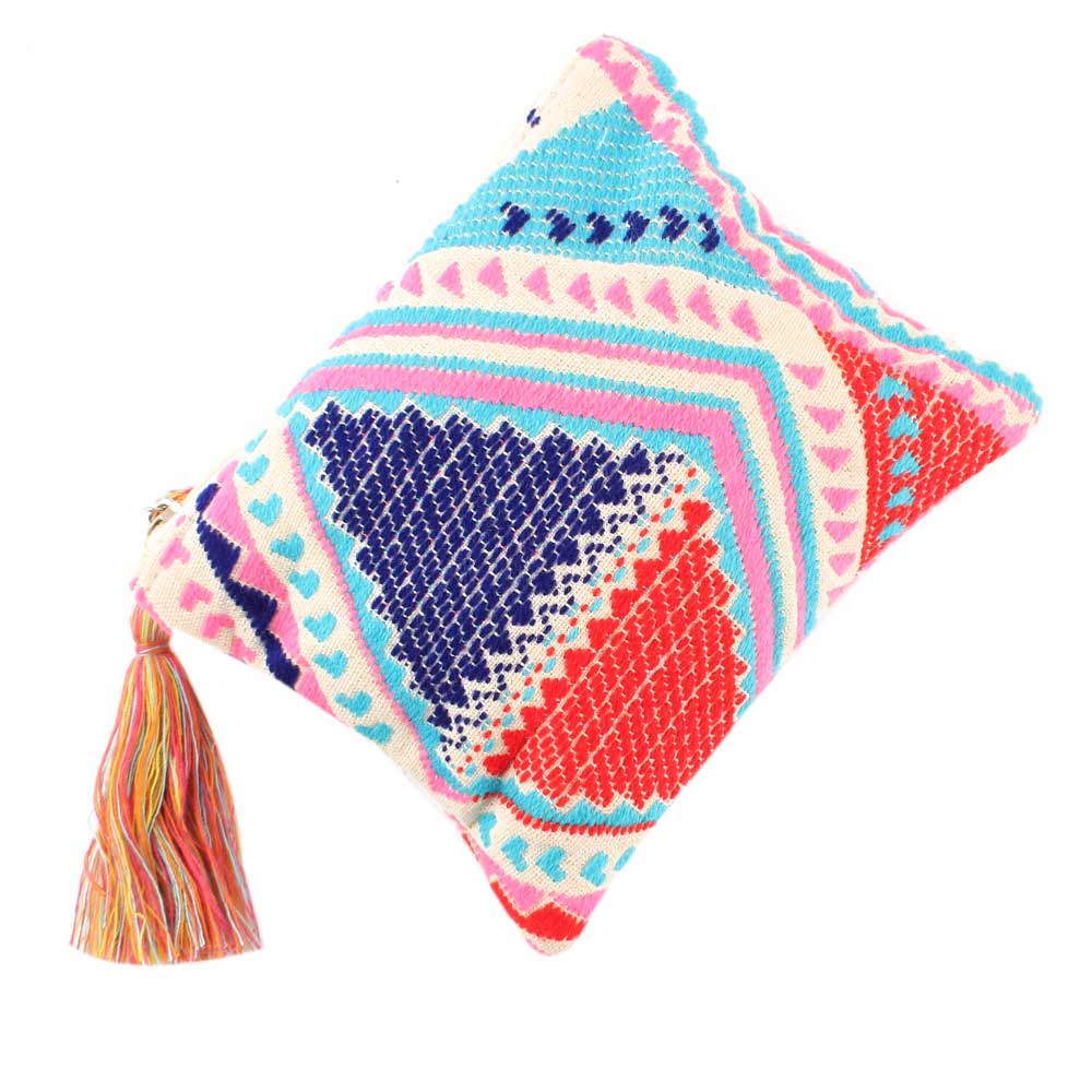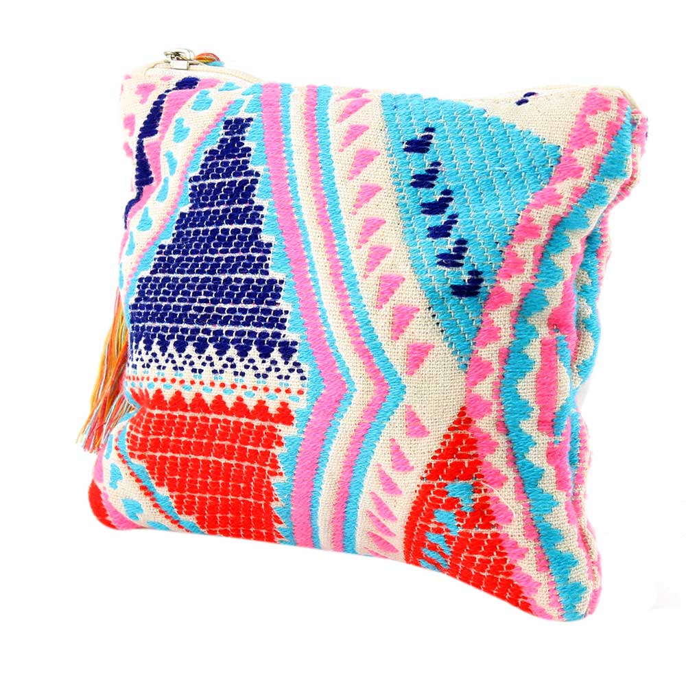 Multicolored Hand Emboidered Zip Top Cotton Jaquard Clutch Bag