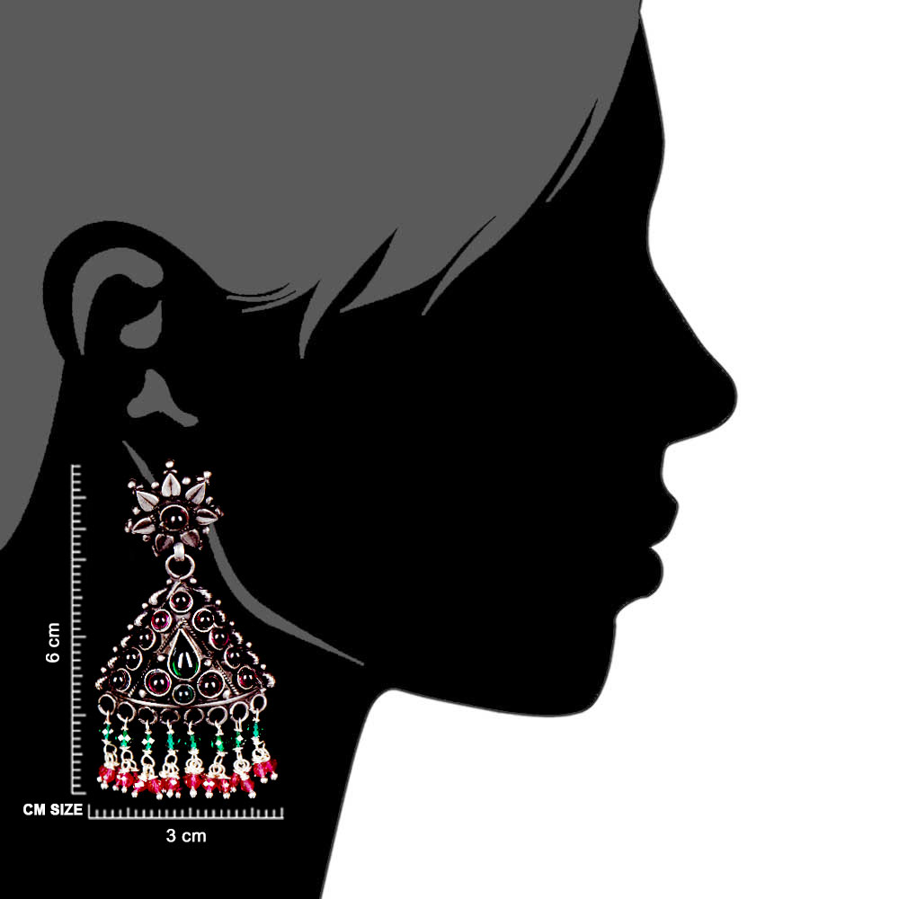 • Multicolored Triangular Sterling Silver Earrings Stone Studded jhumki
