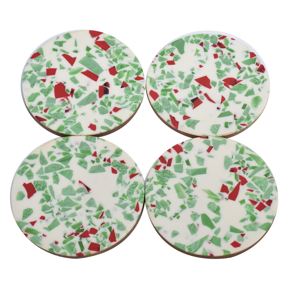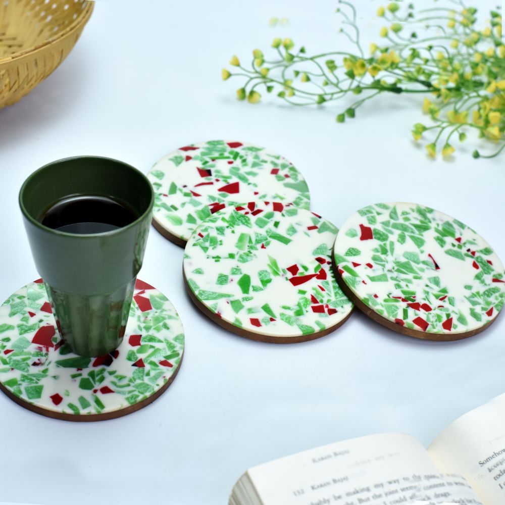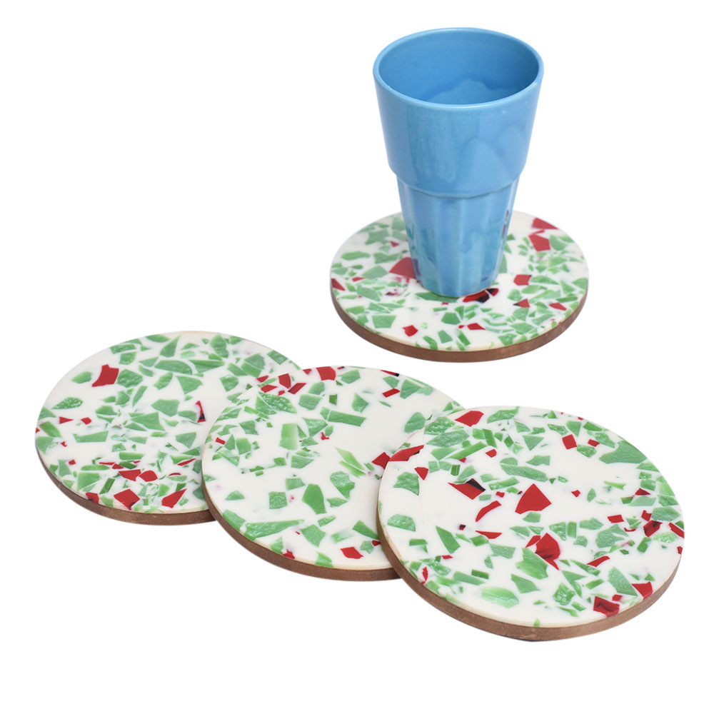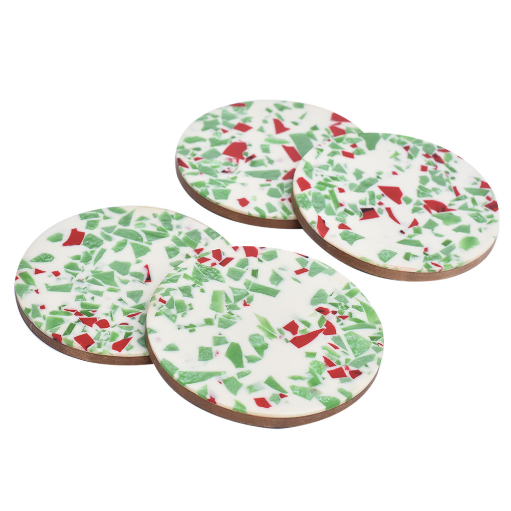 Multicolored Wood And Resin Terrazzo Coasters In Set Of 4