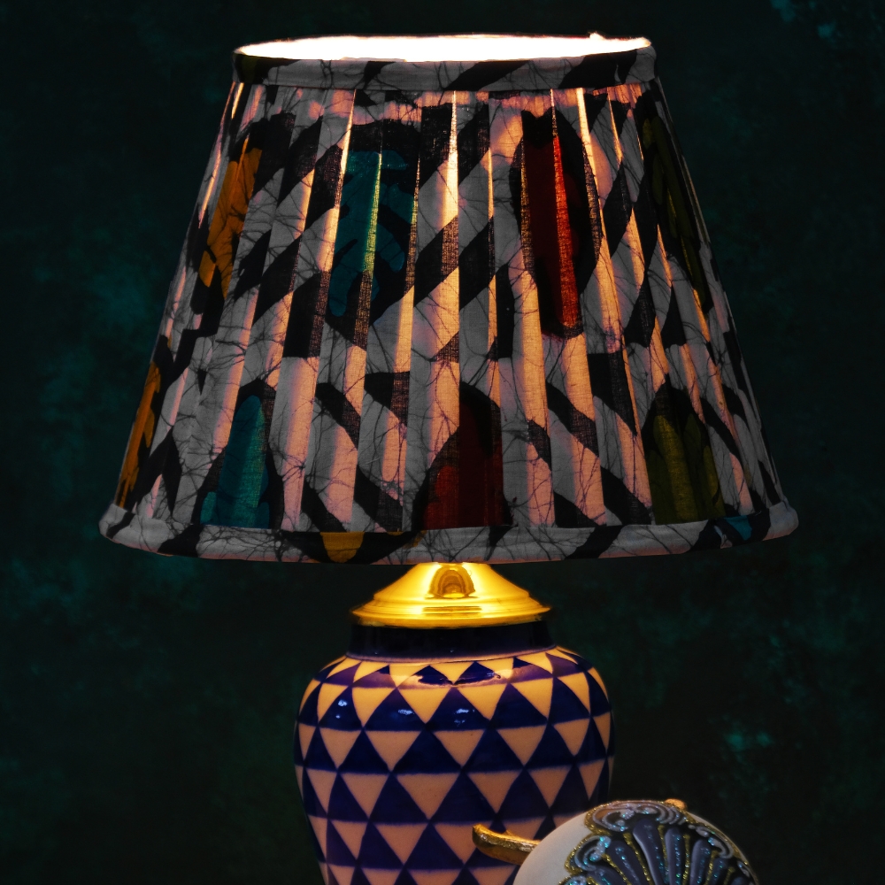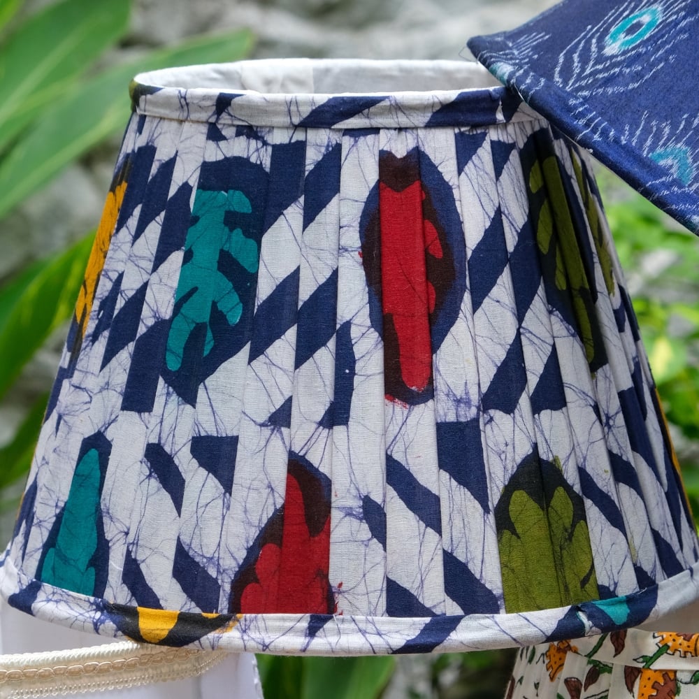 Batik print cotton lampshade is a piece of joy with lovely colourful patterns inpired by Batik technique of tie & dye.