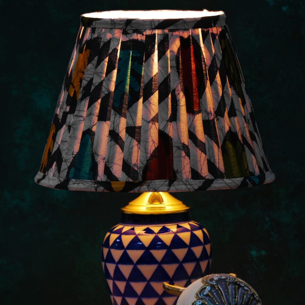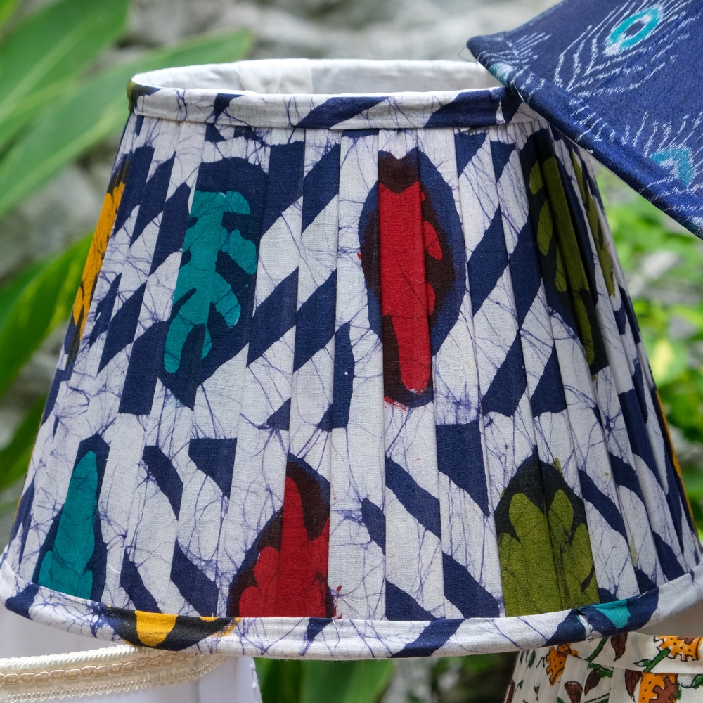 Batik print cotton lampshade is a piece of joy with lovely colourful patterns inpired by Batik technique of tie & dye.