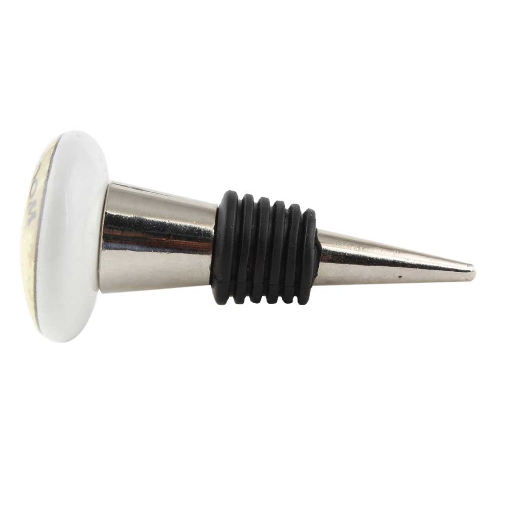 Mushroom Flat Ceramic Wine Bottle Stopper. Zinc Alloy Wine Bottle Stopper with Attractive Jute Bag Packaging.