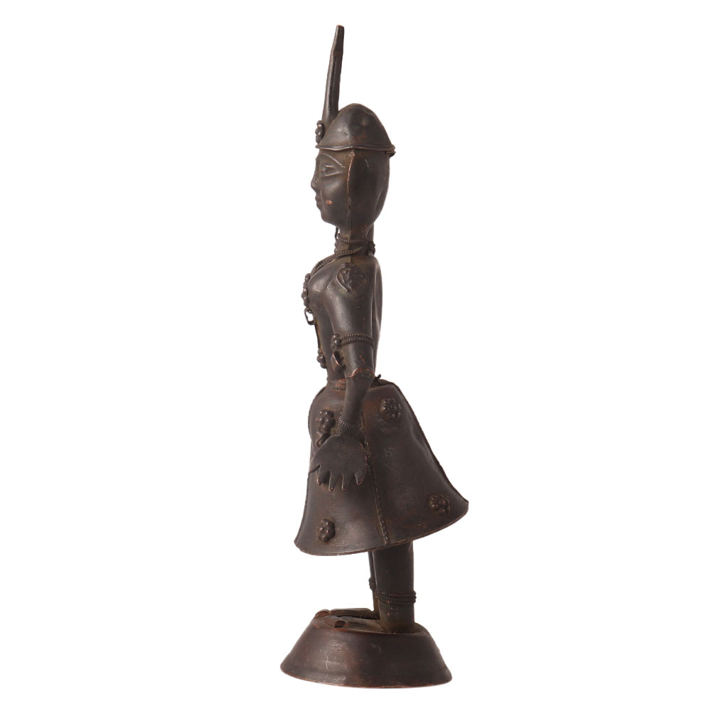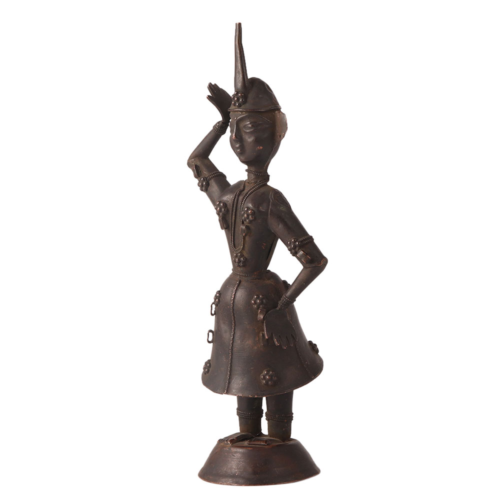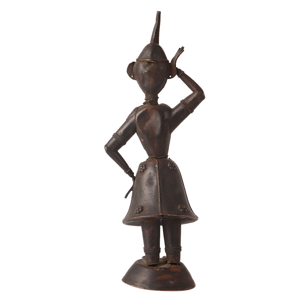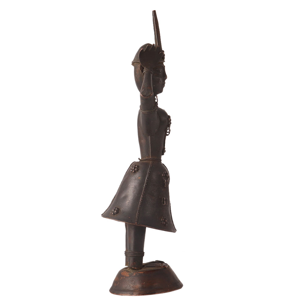 The Hindu black -tone MUSICIAN DANCER indian figurine is a beautifully crafted statue made of brass metal, depicting a Hindu musician and dancer. It features a detailed design that captures the essence of traditional Hindu music and dance, with the dancer gracefully performing to the beat of a double drum held by the musician. This metal statue is an excellent example of traditional Hindu art and culture and makes for a great collectible item for fans of Indian art and history. It can also serve as a beautiful decorative piece for your home or office, adding an exotic touch to any room. Overall, the indian Hindu MUSICIAN DANCER statue gift is a must-have for anyone interested in Indian culture and heritage.