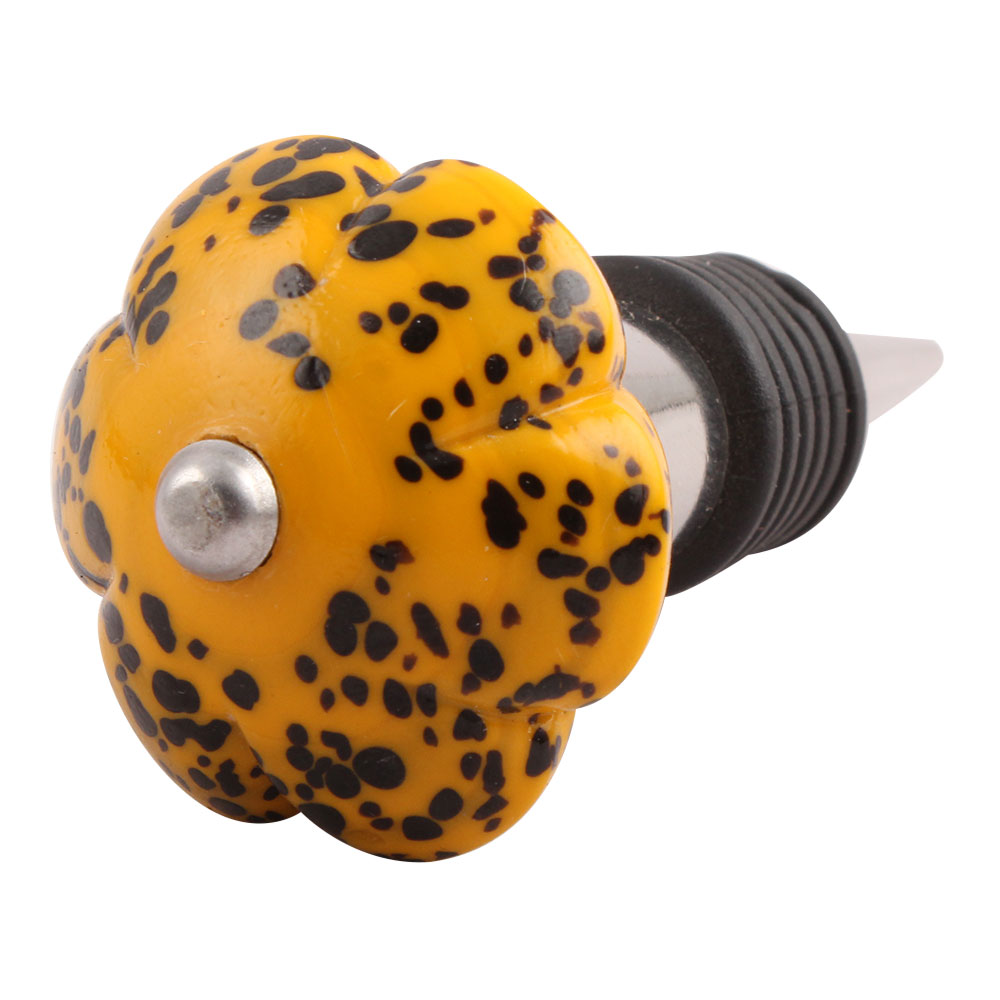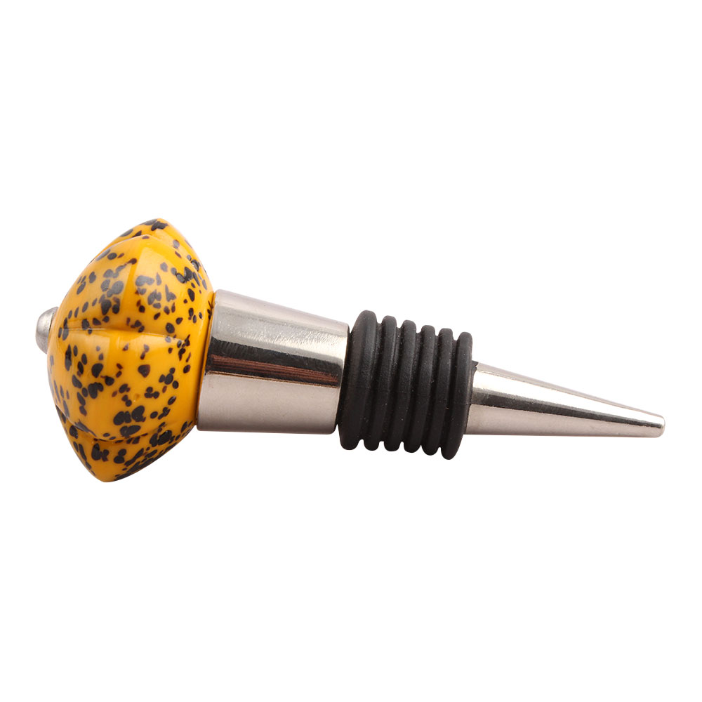 Mustard And Black Melon Glass Wine Stopper.zinc alloy wine bottle stopper.