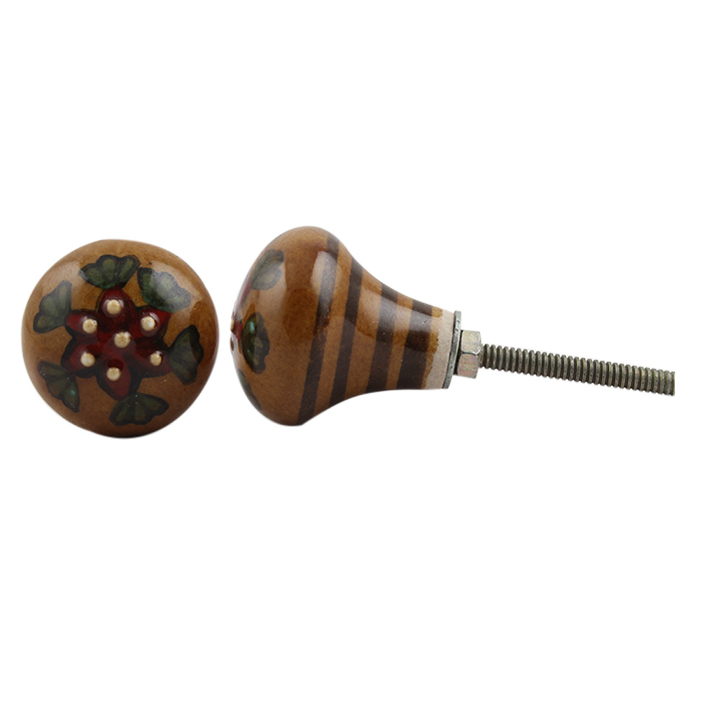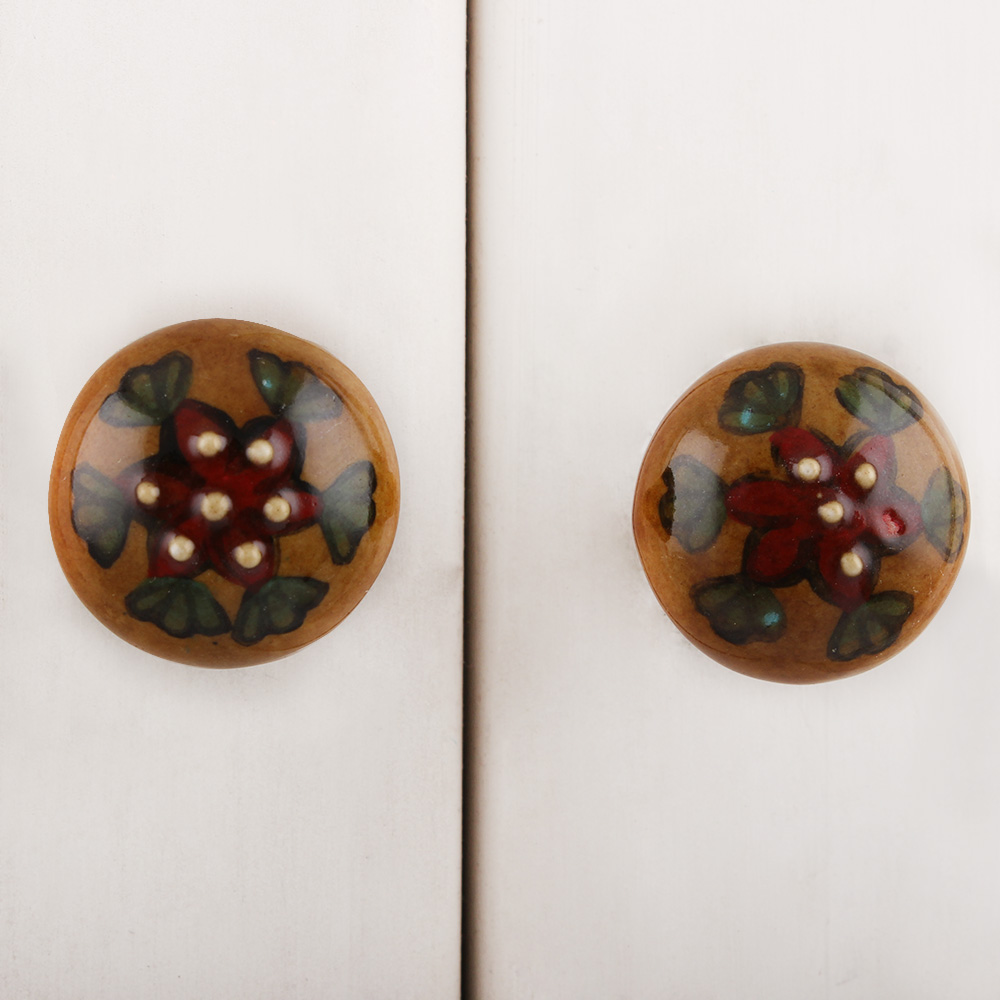 Mustard Big Red Floral Ceramic Wardrobe Knob