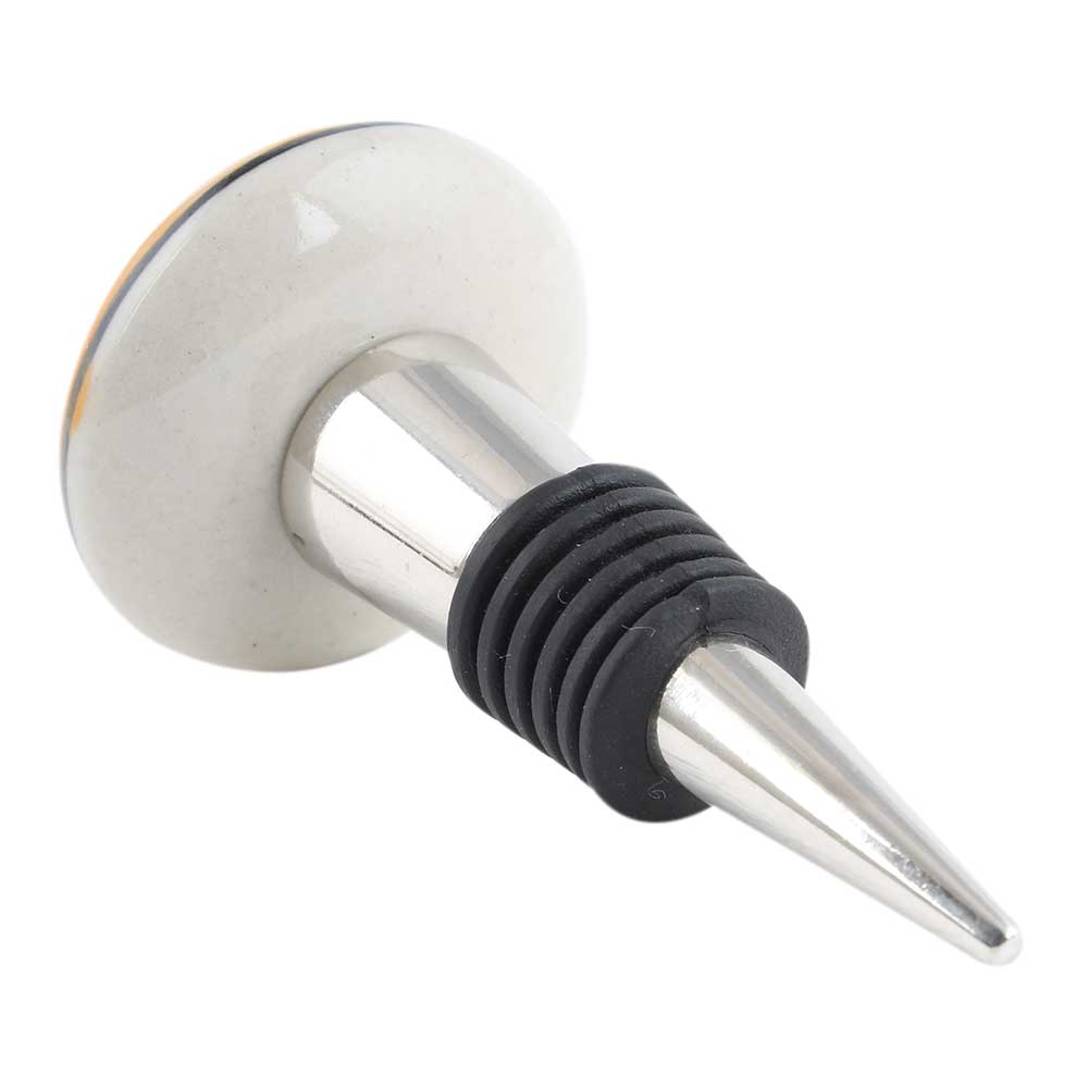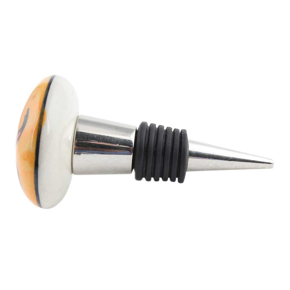 Mustard Fish Flat Ceramic Wine Bottle Stopper. Zinc Alloy Wine Bottle Stopper with Attractive Jute Bag Packaging.