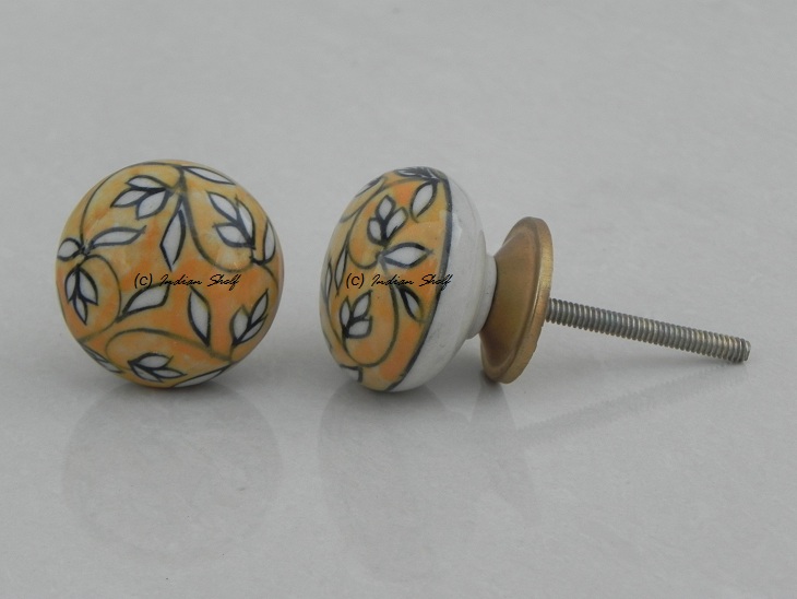 Mustard Floral Knob. Ideal for kitchen cabinets, kitchen drawers, dining room, bed room, chest drawers, dressing tables, almirah