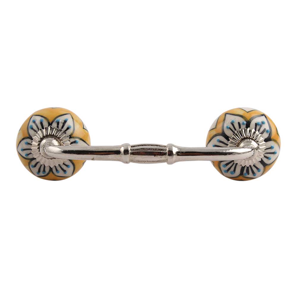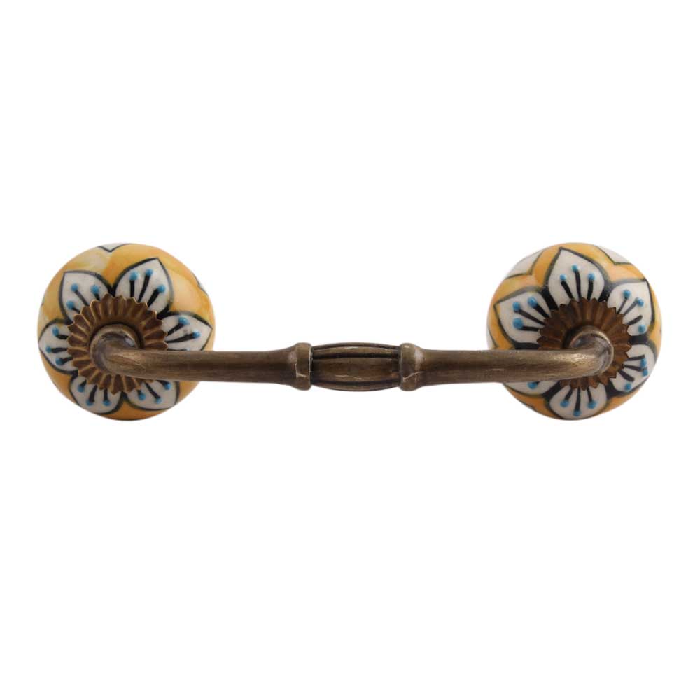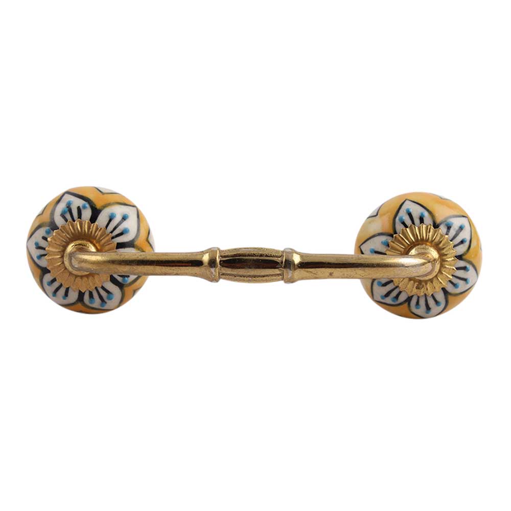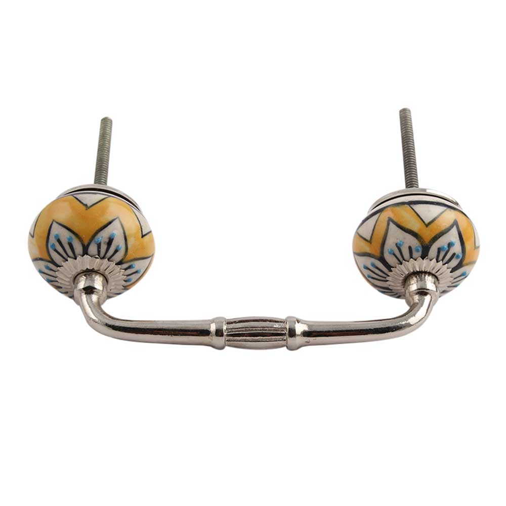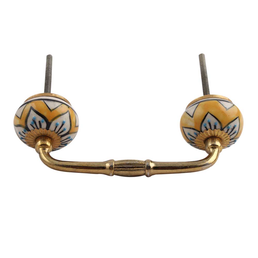 Mustard Flower Ceramic Bridge Handle. Ideal for Drawer, Dresser, Cabinet, Wardrobe, Cupboard and Almirah.