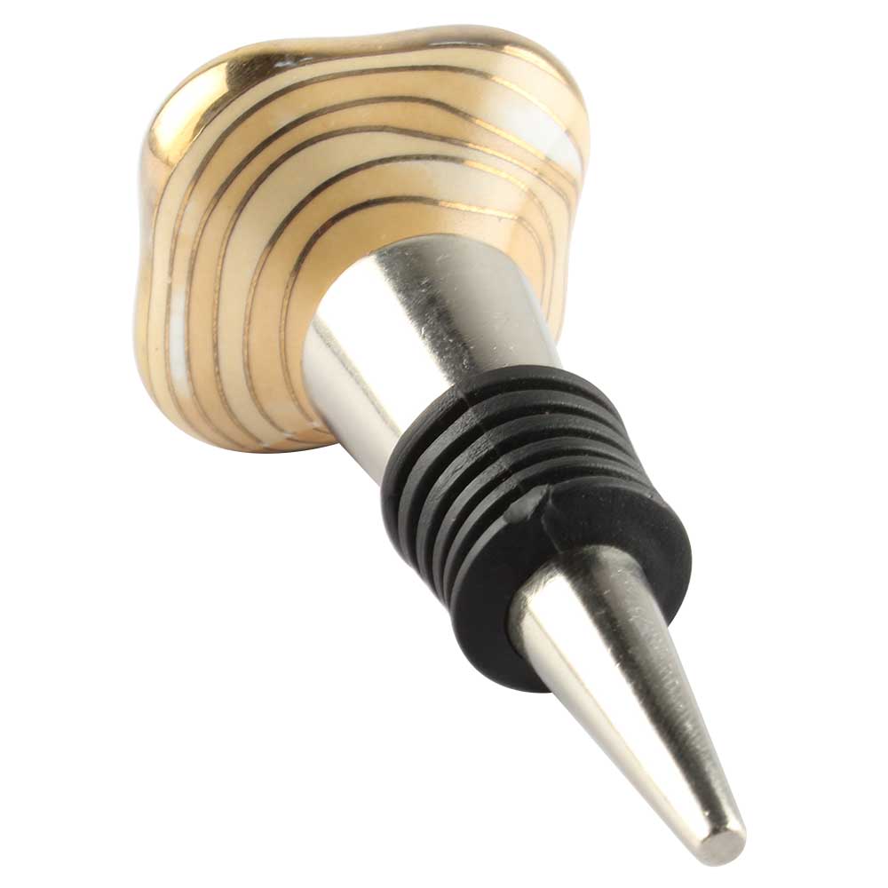 Mustard Square Ceramic Wine Stopper. Zinc Alloy Wine Bottle Stopper with Attractive Jute Bag Packaging.