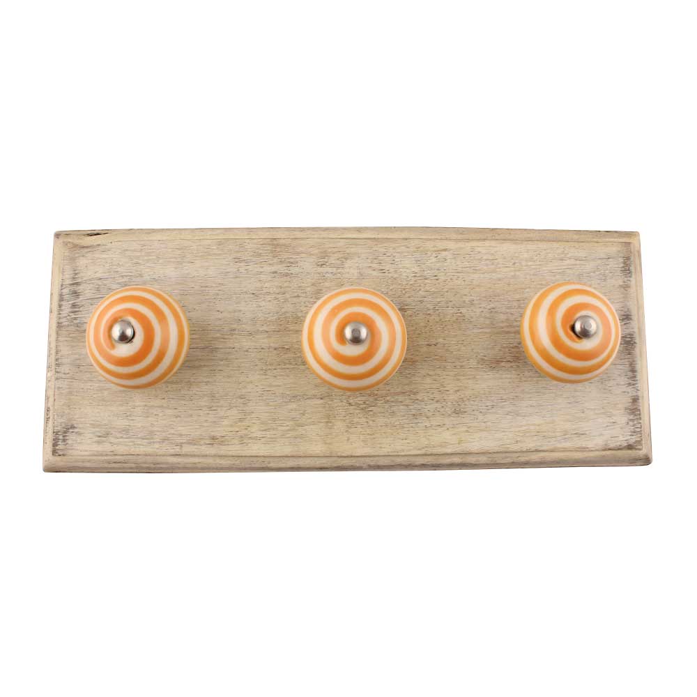 Material: Kiln-fired ceramic with solid hardwood base Finish: Glossy mustard striped ceramic knob + natural matte wood Installation: Wall-mounted with hidden screw system (hardware included)