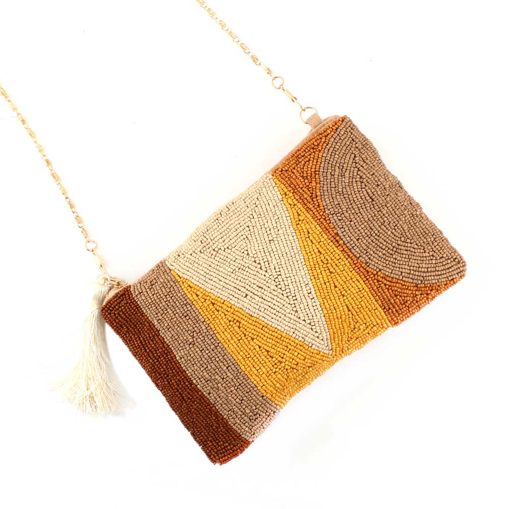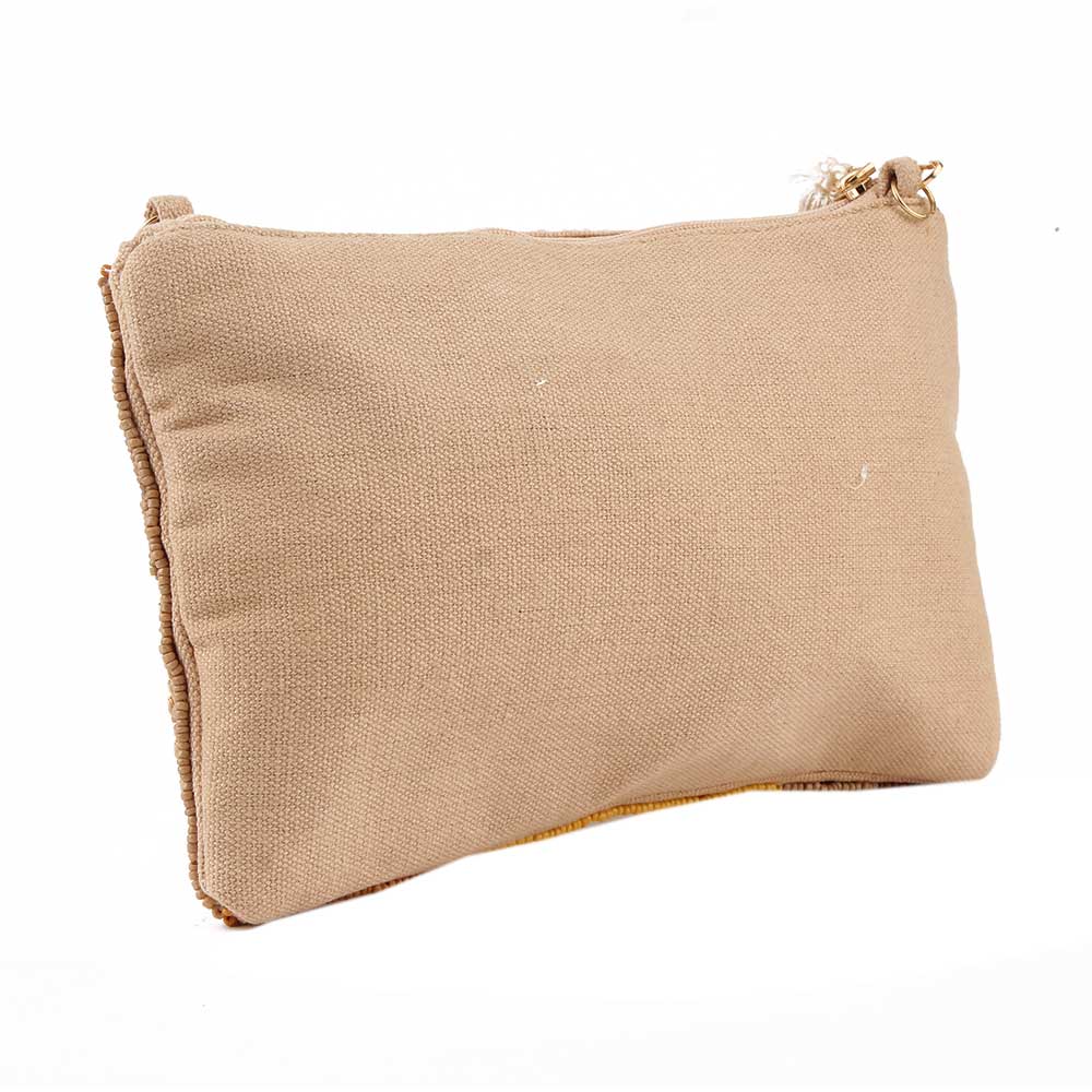Muticolored Glass Bead And Cotton Ziptop Clutch Bag