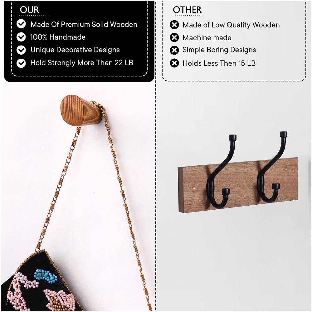 Made from solid wood, these hooks are strong enough for daily use but light enough to install easily on most surfaces.