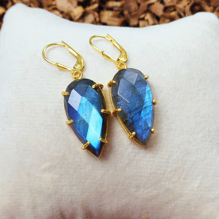 The Natural Labradorite Dangle Earrings capture the enchanting allure of the northern lights within a handcrafted brass setting. Each earring features genuine labradorite gemstones — known for their shifting iridescent hues — framed in warm, polished brass. The subtle blue-gray shimmer of the stones radiates sophistication, while the artisanal finish adds authenticity. Perfect for wholesale collections and boutique jewelry displays, these earrings reflect balance, mystery, and timeless beauty.