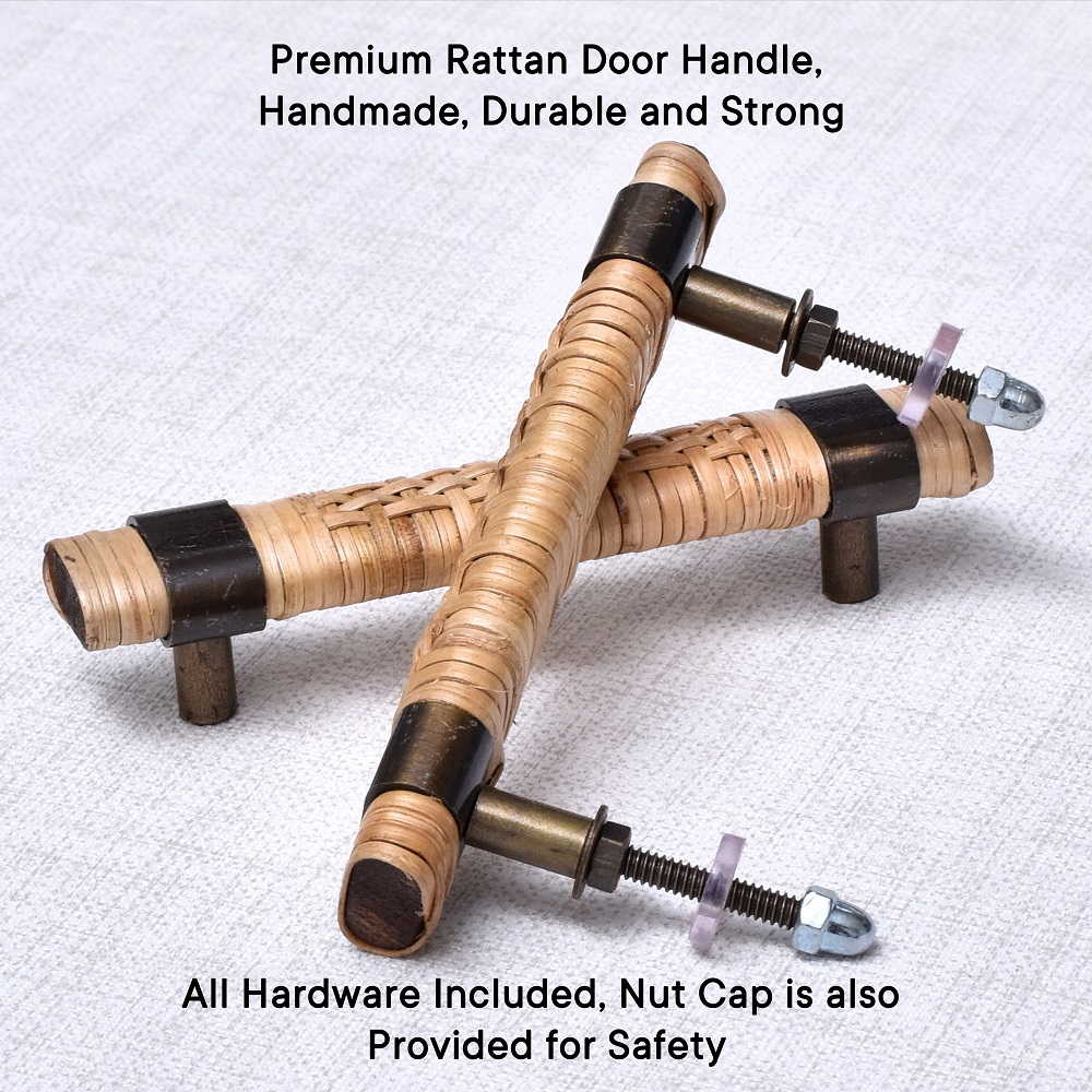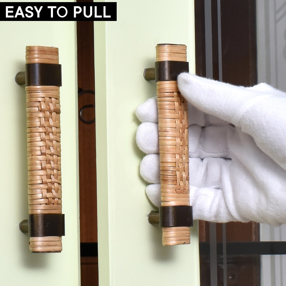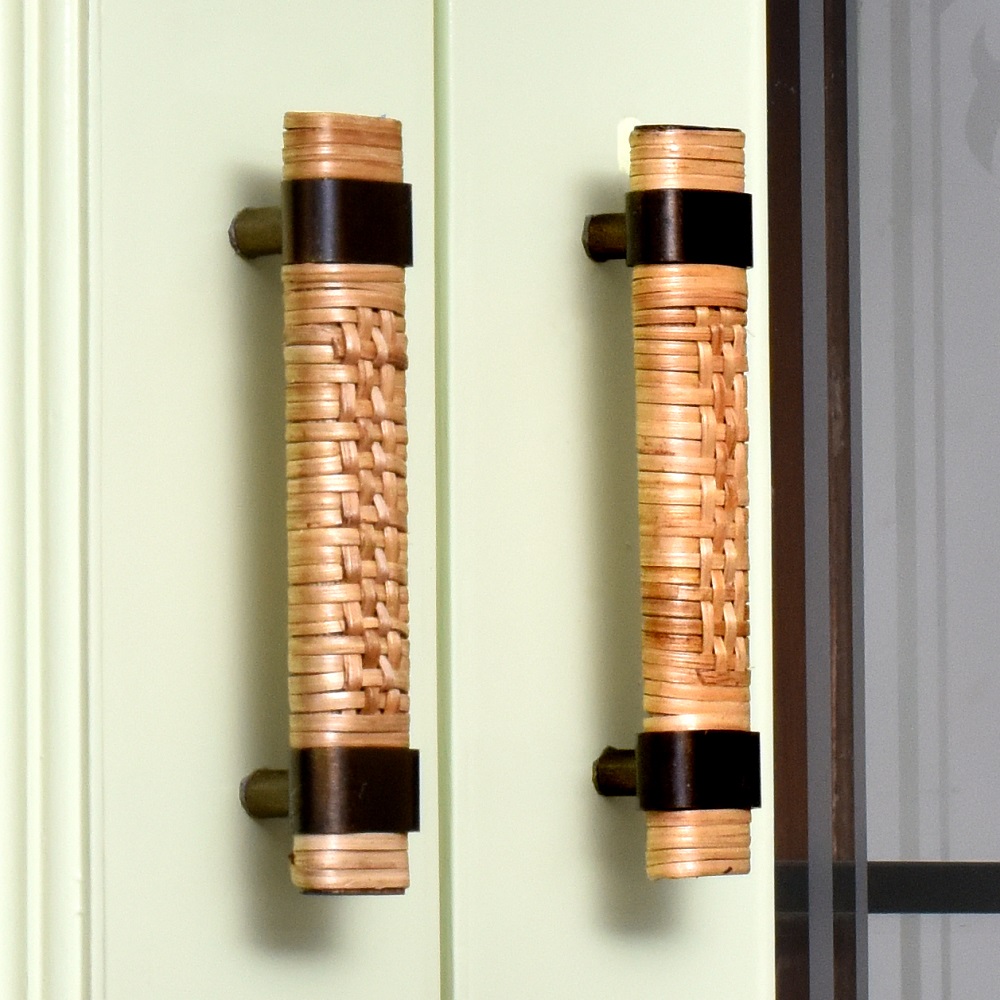 The natural finish of the wood paired with the intricately woven rattan creates a timeless appeal. Whether in a country-style kitchen, a coastal bathroom, or modern urban home, these handles add warmth and character.