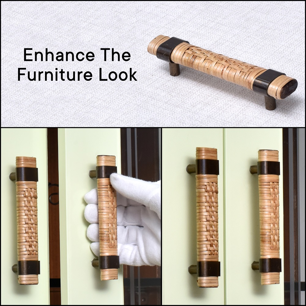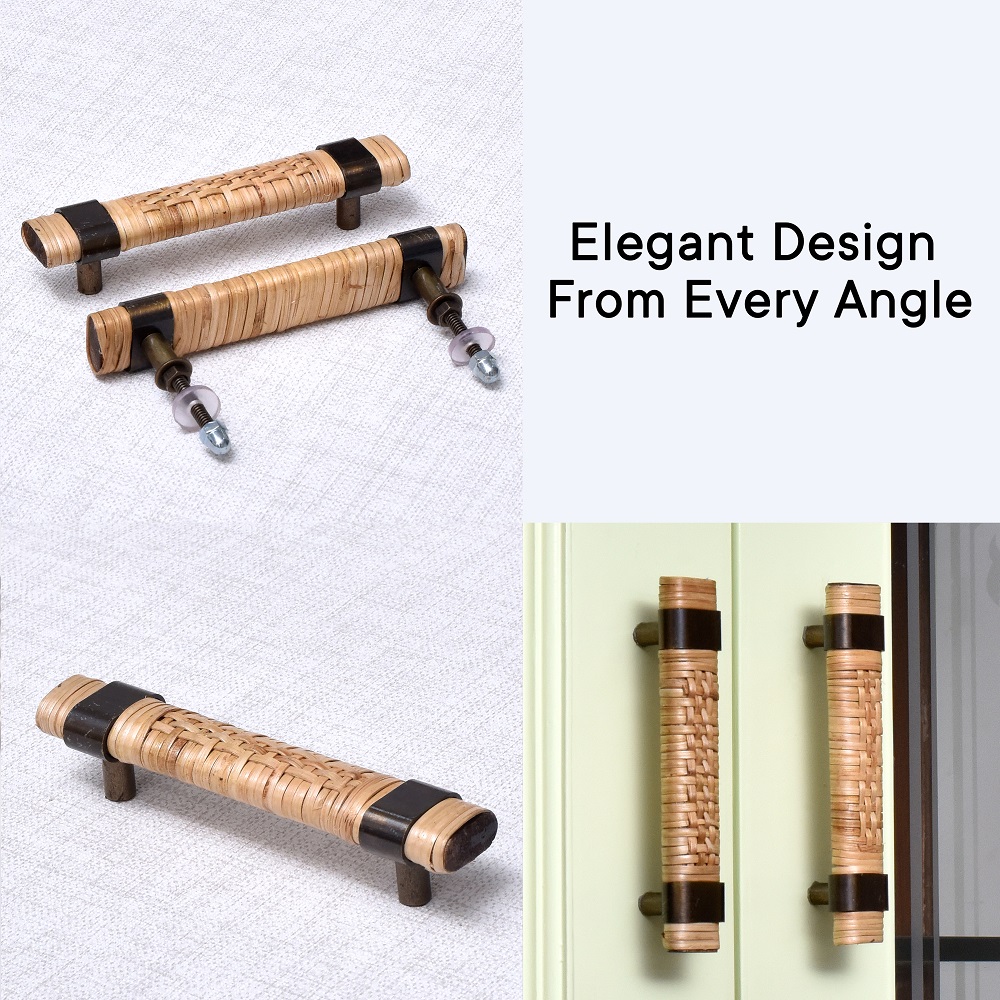 These handles are made with eco-friendly, sustainable materials, ensuring durability while maintaining an earthy, natural look. The combination of wood and rattan makes each handle unique, offering a distinctive visual texture that’s both elegant and environmentally conscious.