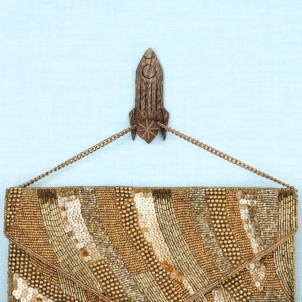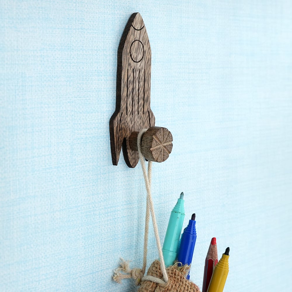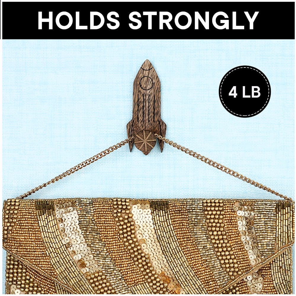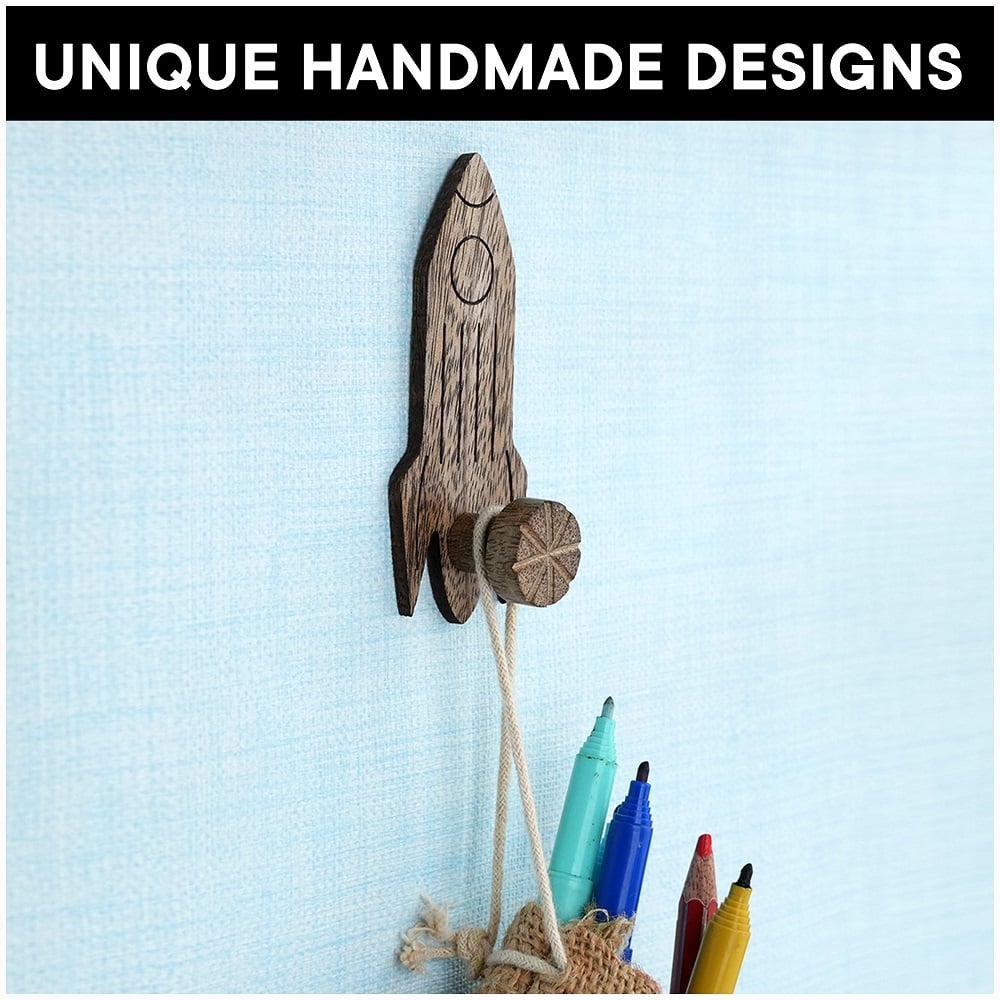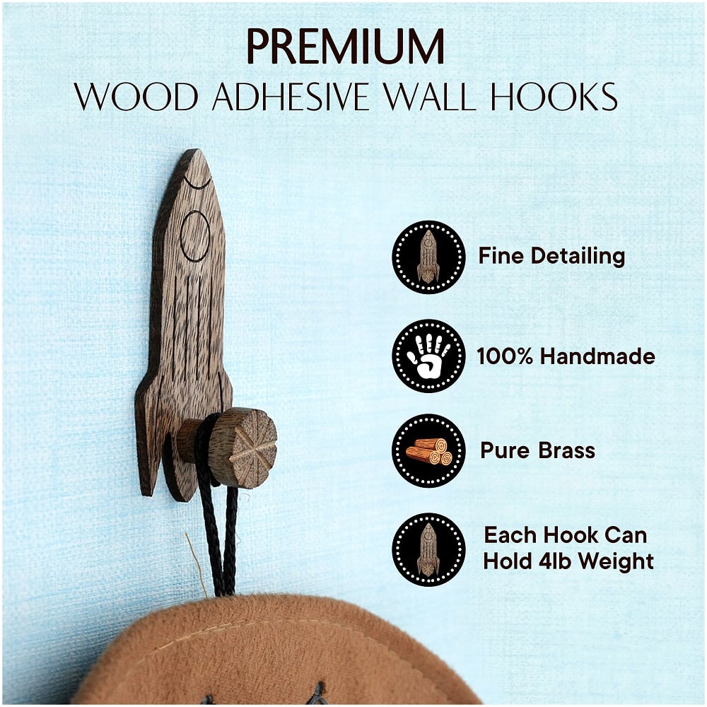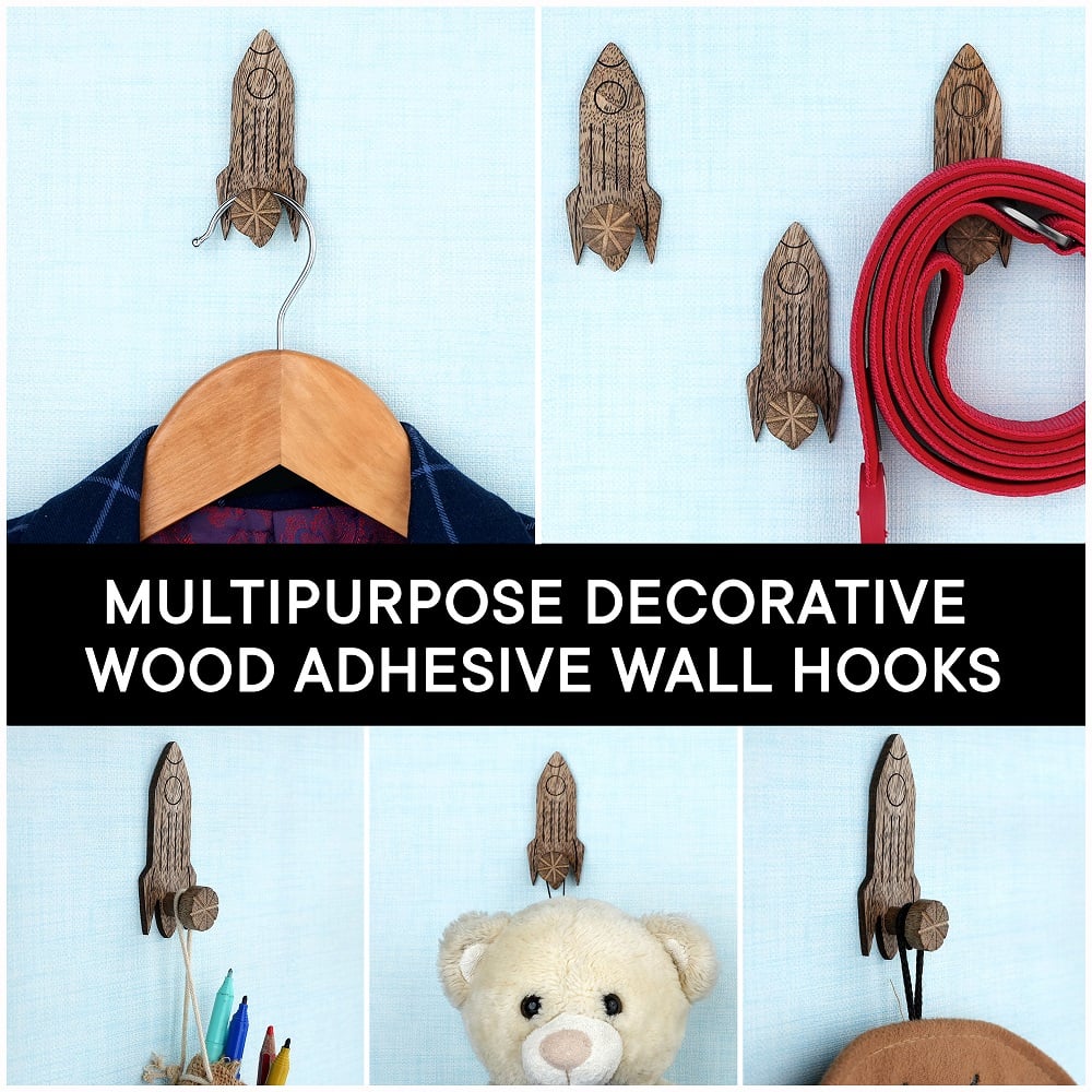 Natural Wooden Adhesive Rocket Shape Coat Wall Hooks Set of 3. This Hook is Strong Enough to Hold Your Cloths, Keys, Tea Cups, Coffee Mugs, Hand Towels Etc.