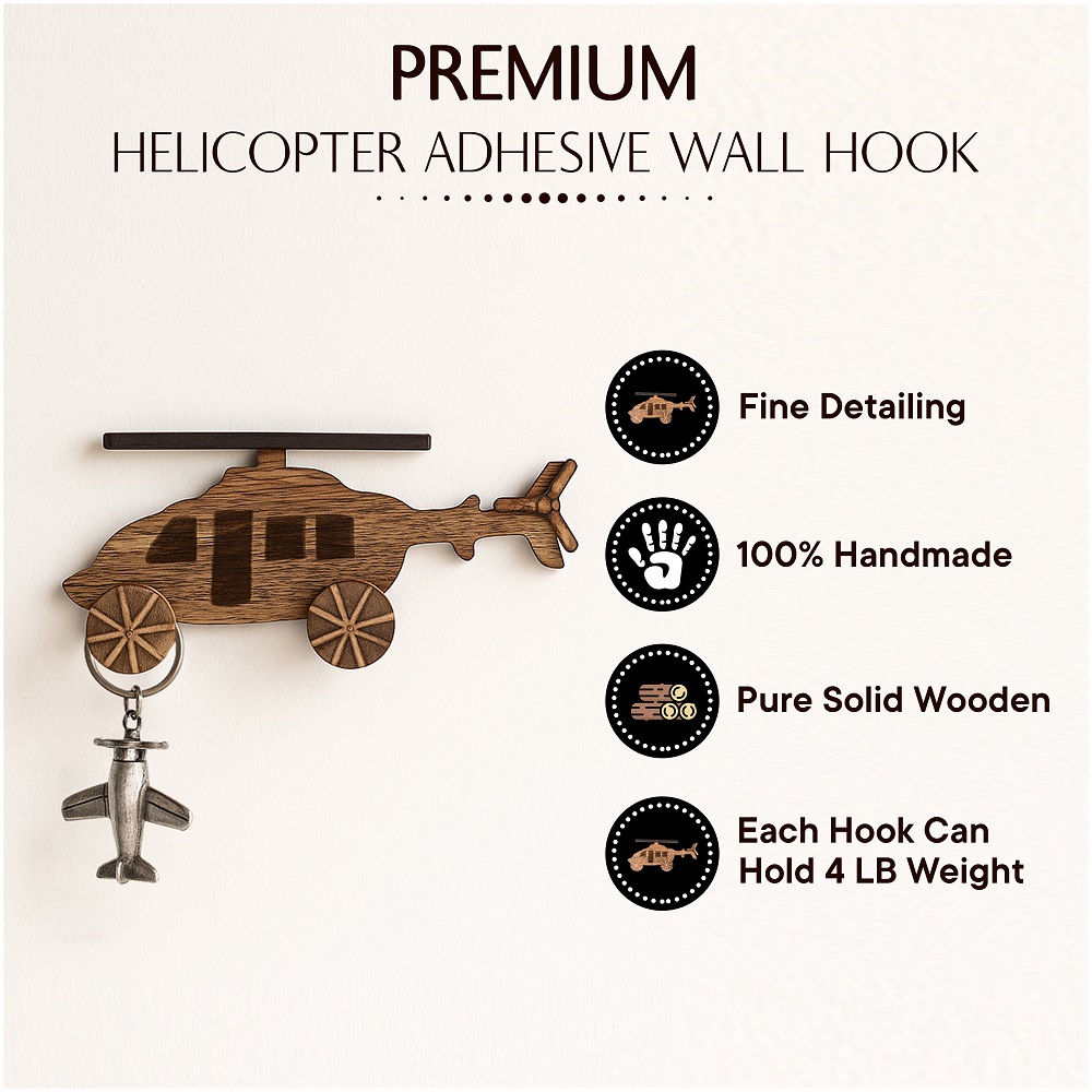 • Natural Wooden Helicopter Design Adhesive Wall Hook