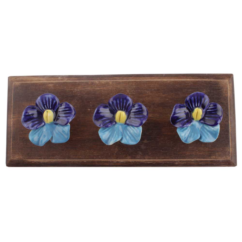 Navy Blue And Turquoise Ceramic Flower Wooden Hooks