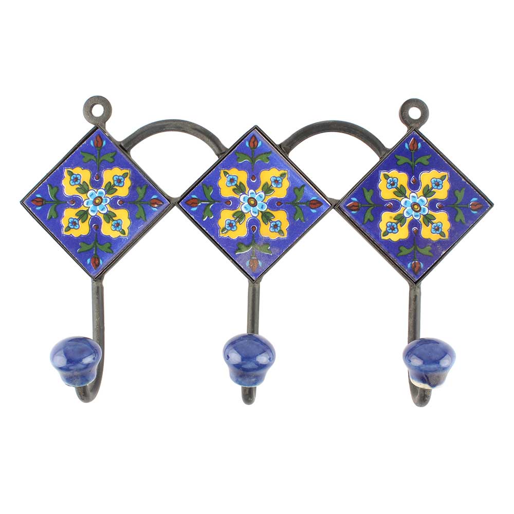 Navy Blue And Yellow Ceramic Floral Tiles Hook