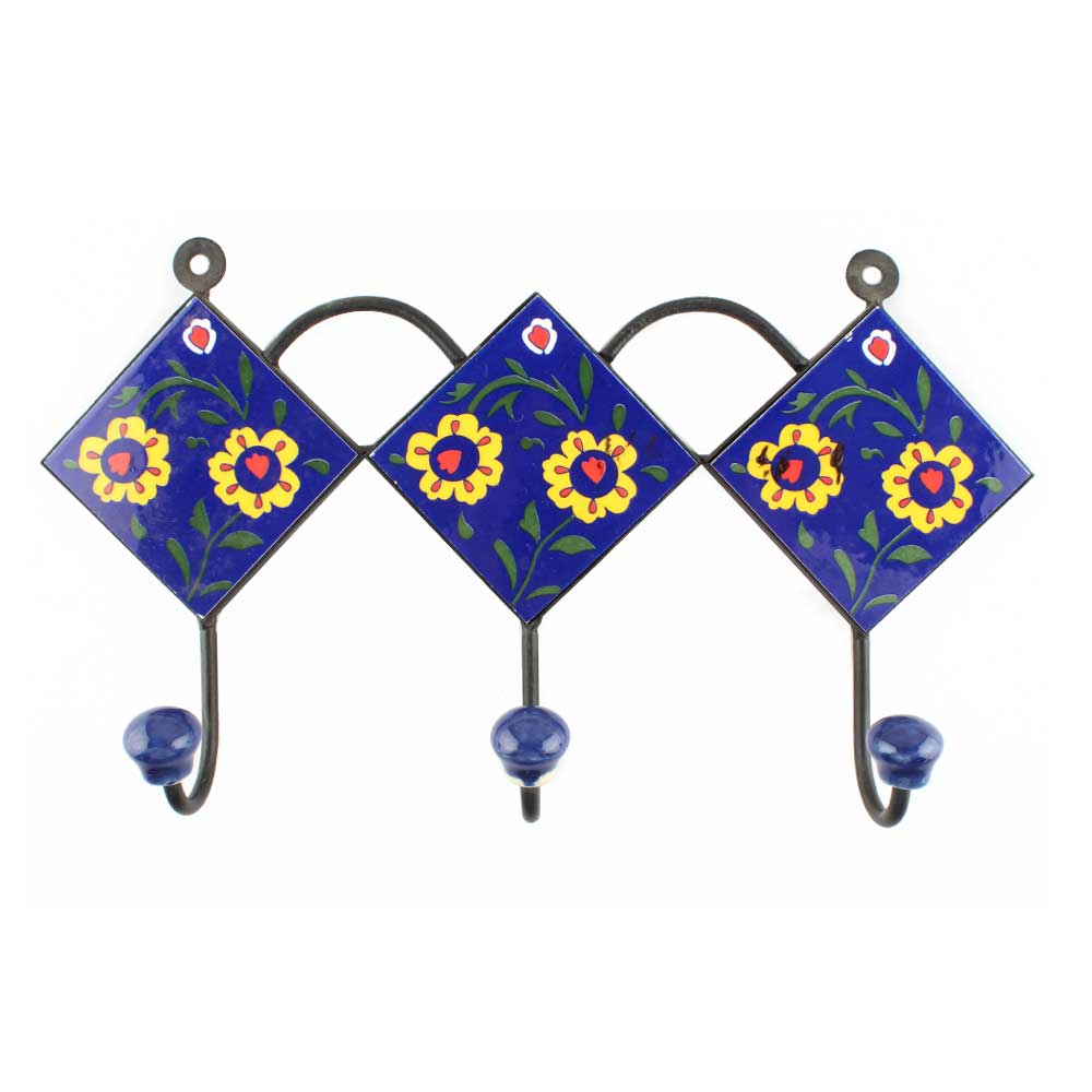 Navy Blue And Yellow Ceramic Floral Tiles Hook