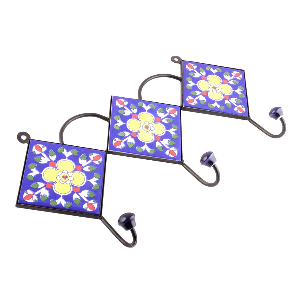 Navy Blue And Yellow Ceramic Floral Tiles Hooks