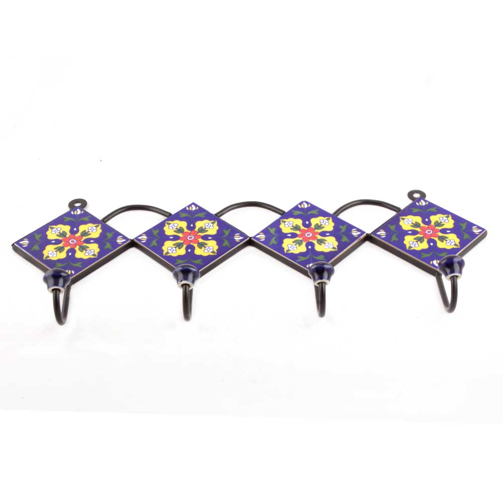 Navy Blue And Yellow Ceramic Flower Tiles Hooks