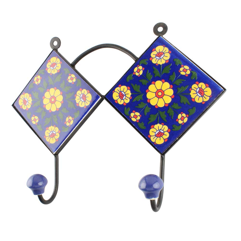 The Navy Blue and Yellow Flower Ceramic Tiles Hook combines bold color and handcrafted charm with everyday function. This decorative wall hook features a hand-glazed ceramic tile in a vibrant navy blue and yellow floral design, mounted on a strong metal base with a rounded ceramic peg. It’s a beautiful and practical addition to entryways, bathrooms, kitchens, or closets—adding a splash of color while keeping essentials organized and within reach.