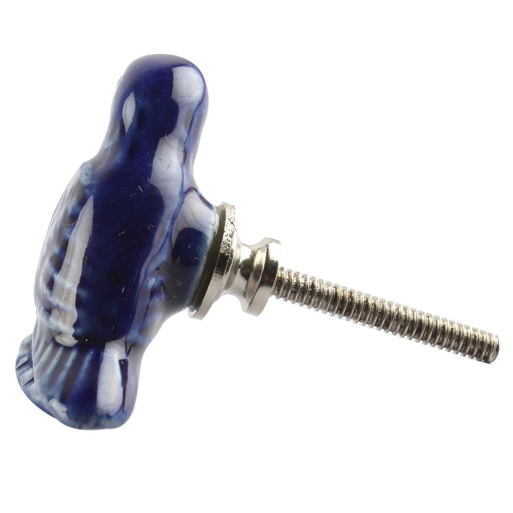 Navy blue ceramic bird dresser knob is suitable for any wardrobe, chest of drawers bedroom furniture, set of cupboards, dresser or kitchen furniture and wardrobes. This cupboard knob is handmade and very easy to Install all hardware required for installation Included.