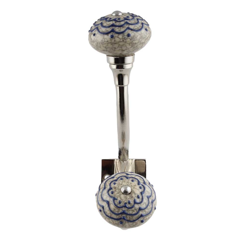 Navy Blue Crackle Ceramic Silver Iron Hook. This Hook is Strong Enough to Hold Your Cloths, Keys, Tea Cups, Coffee Mugs, Hand Towels etc.