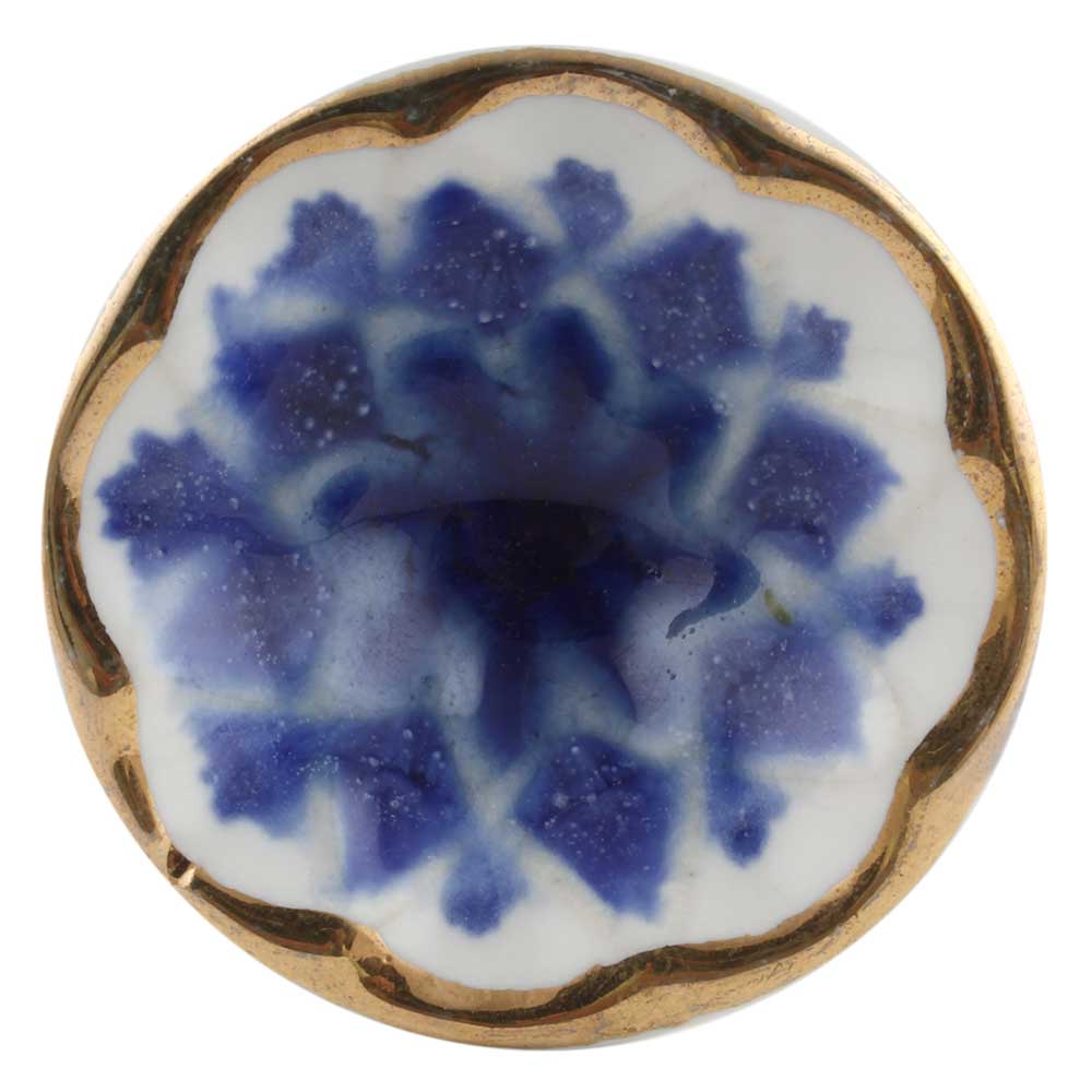 Navy Blue Cut Ceramic Cabinet Knob in Silver Fitting