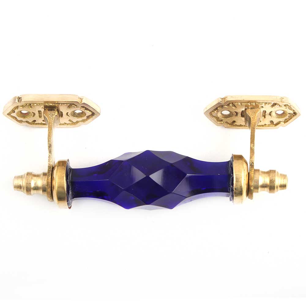 Navy Blue Cut Glass Golden Small Dresser Handle