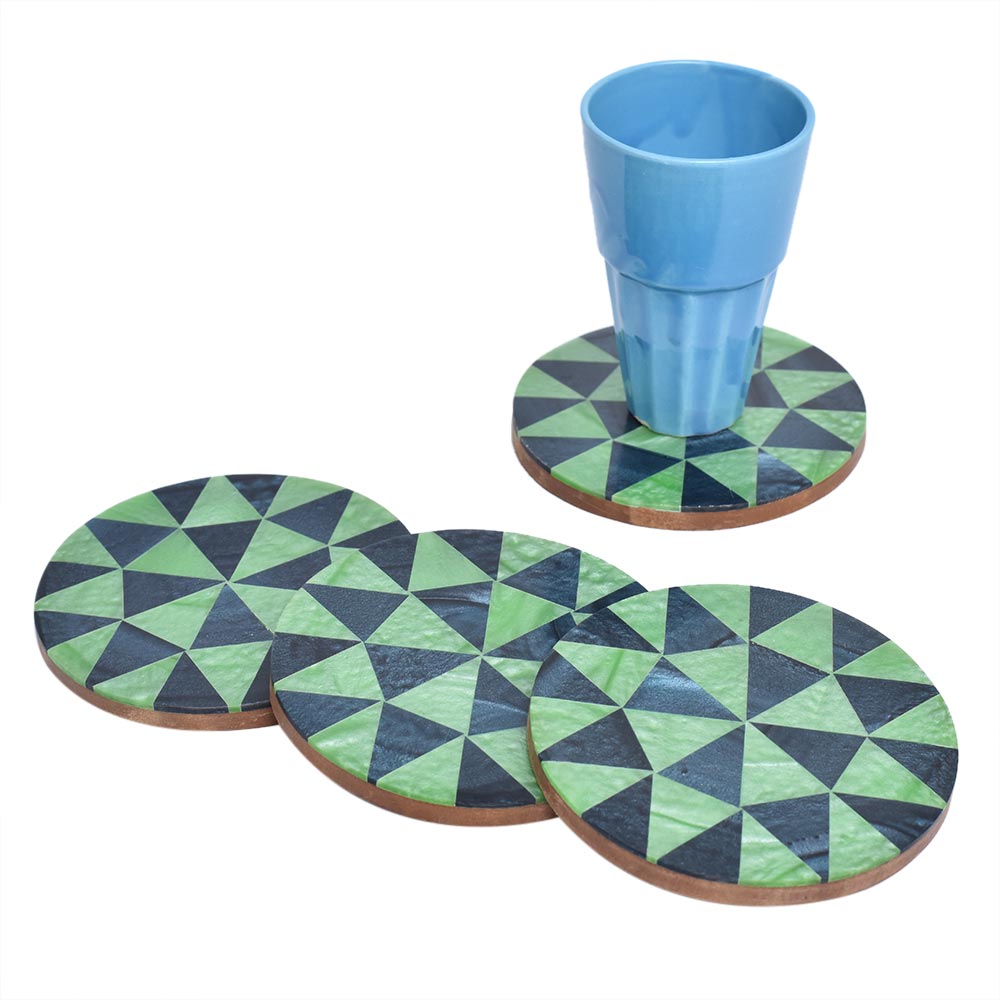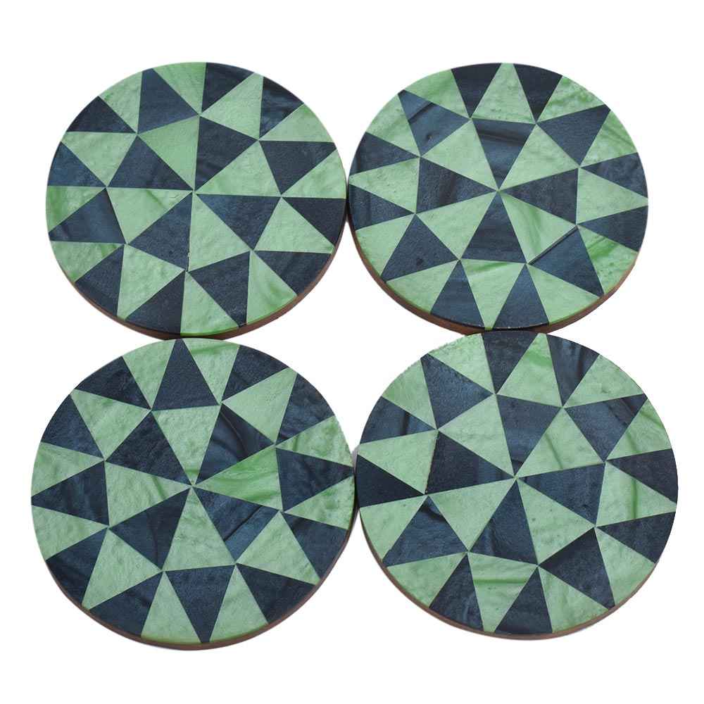Navy Blue Diamond Round Wooden And Resin Coasters Set of 4