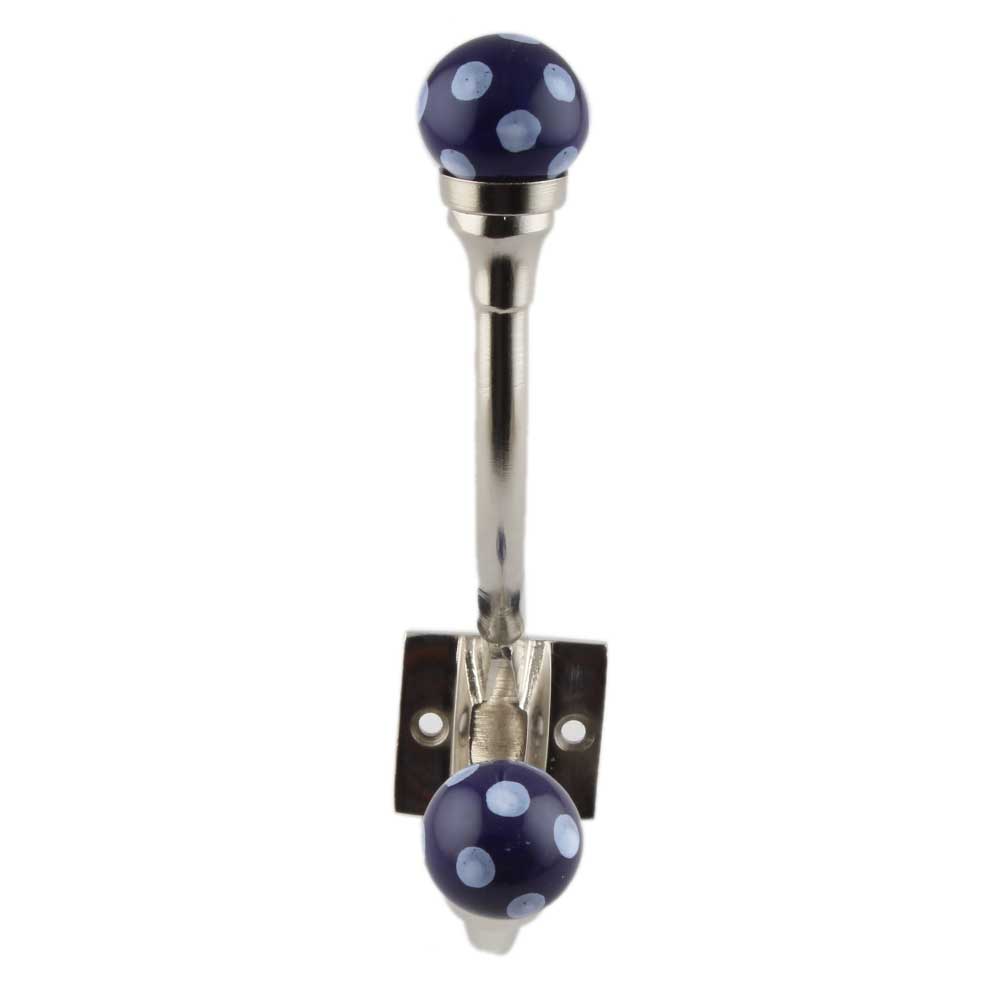 This Navy Blue Dotted Ceramic Iron Hook blends handcrafted ceramic charm with the rugged strength of forged iron. The deep navy glaze is hand-applied and accented with white dotted detailing, adding a subtle yet striking pop of pattern to your space. Each hook is slightly unique, showcasing artisan craftsmanship that brings warmth, texture, and individuality to your walls. Whether you're hanging towels, bags, or accessories, this hook does the job beautifully.