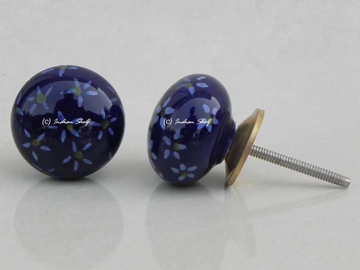 Navy Blue Flat Ceramic Knob. Ideal for kitchen cabinets, kitchen drawers, dining room, bed room, chest drawers, dressing tables, almirah