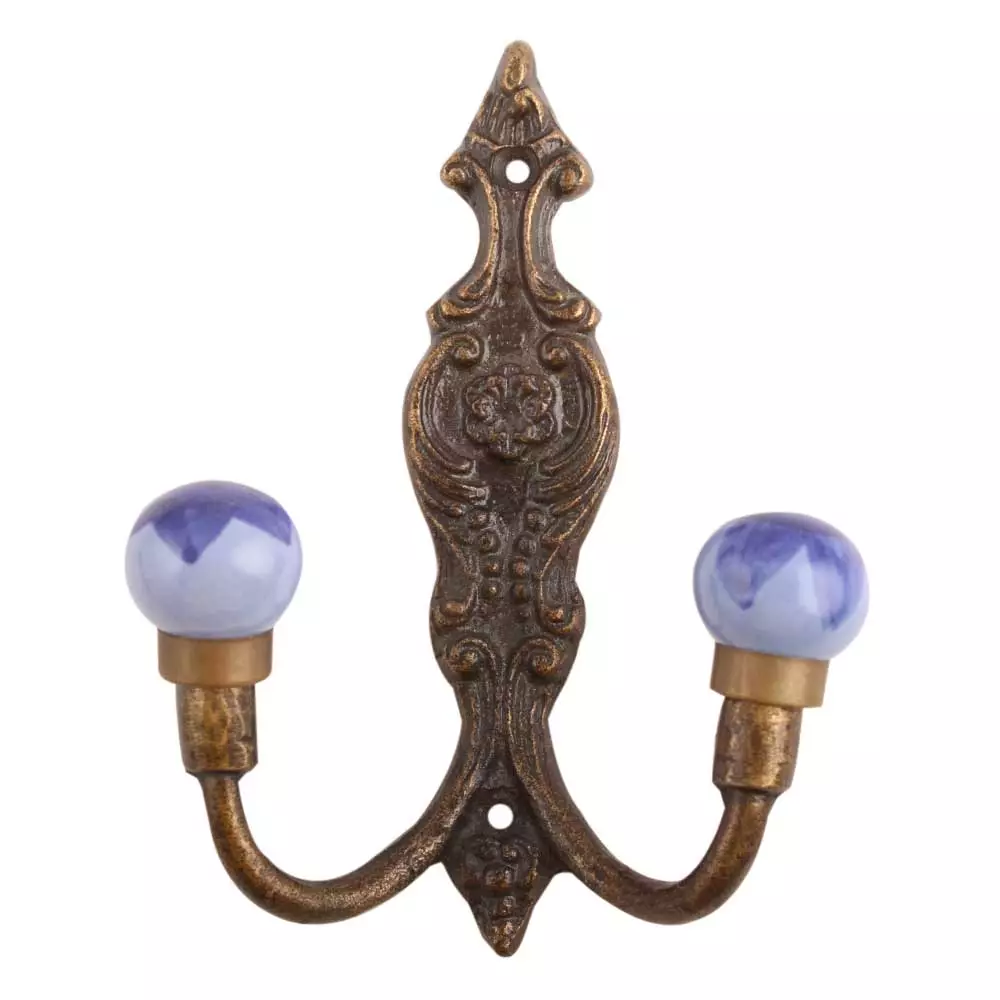 Navy Blue Floral Ceramic Iron Hook. When Put on Wall or Cabinet It Gives A Sturdy Look. This Hook is Strong Enough to Hold Your Cloths, Keys, Tea Cups, Coffee Mugs, Hand Towels Etc