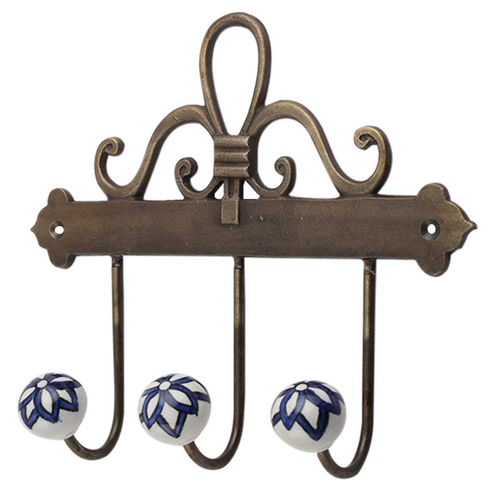 Navy Blue Floral Ceramic Iron Hook. A Perfect Complement to the Soft Tone of the Wood are these White Traditional Hat & Coat Hook Made of Genuine Porcelain and Brass. It can be use to Hang Jewellery, Leashes, Towels, Scarves, Light Weight Sweaters, Caps Etc.