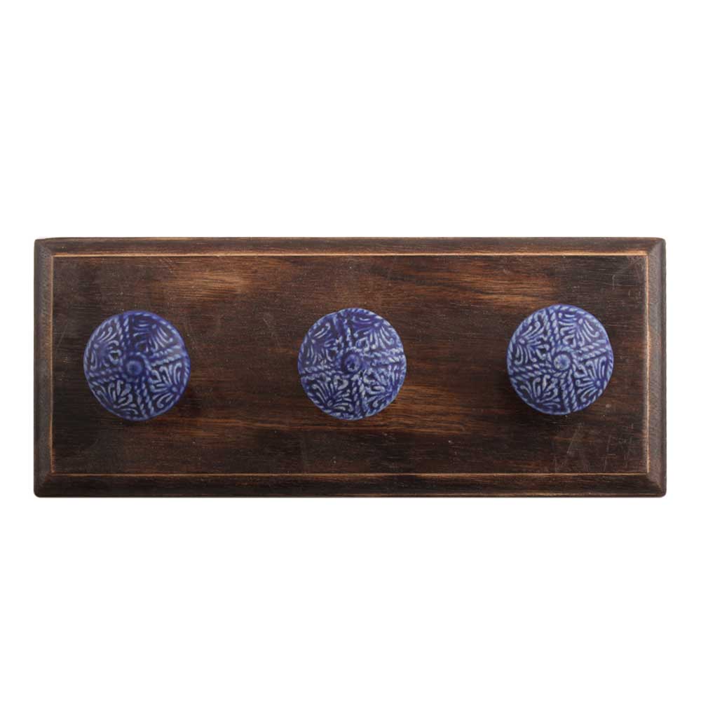 Navy Blue Floral Ceramic Wooden Hook. A Perfect Complement to the Soft Tone of the Wood are these White Traditional Hat and Coat Hook Made of Genuine Porcelain and Brass. It can be used to Hang Jewelry, Leashes, Towels, Scarves, Light Weight Sweaters, Caps etc.