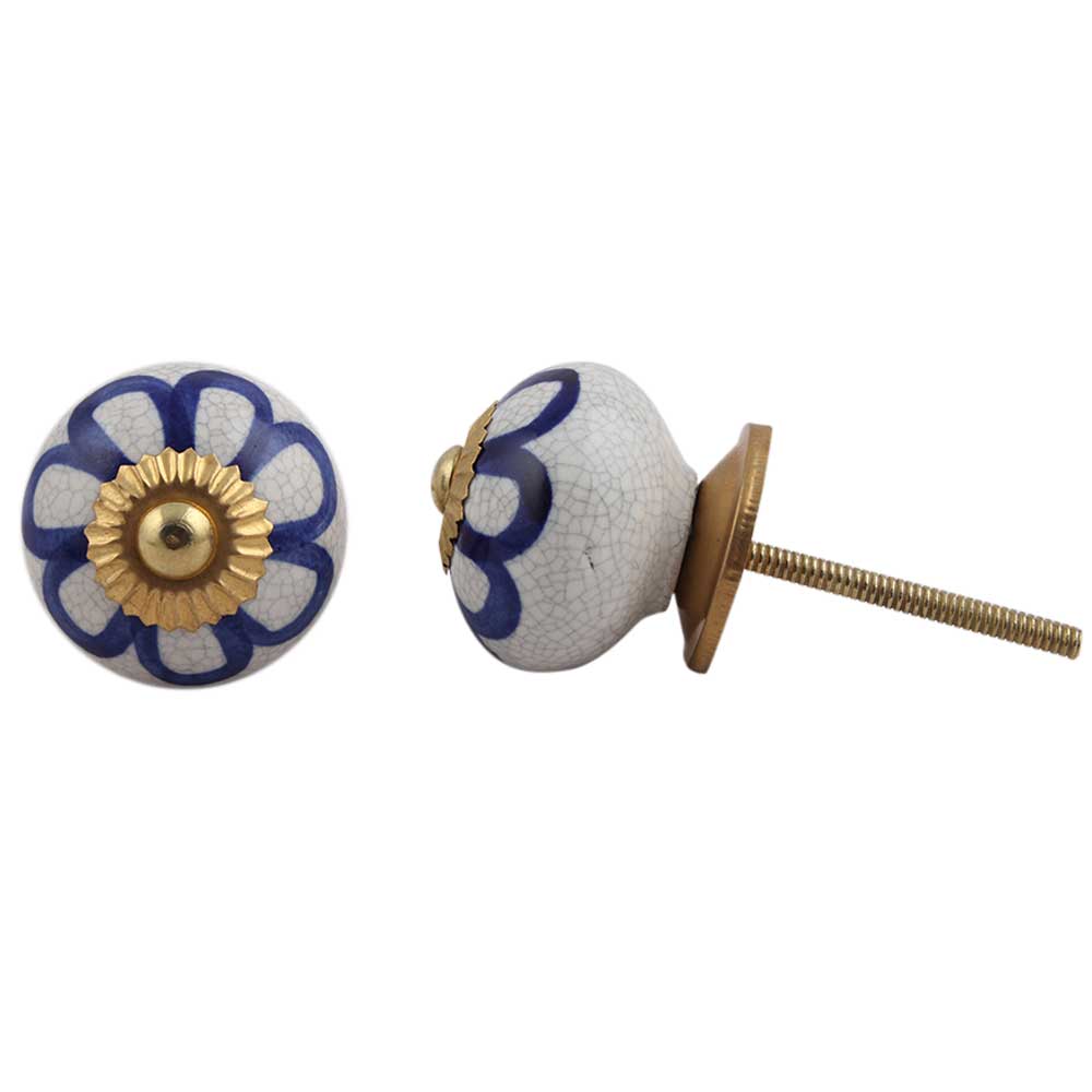 Navy Blue Floral Crackle Ceramic Drawer Knob