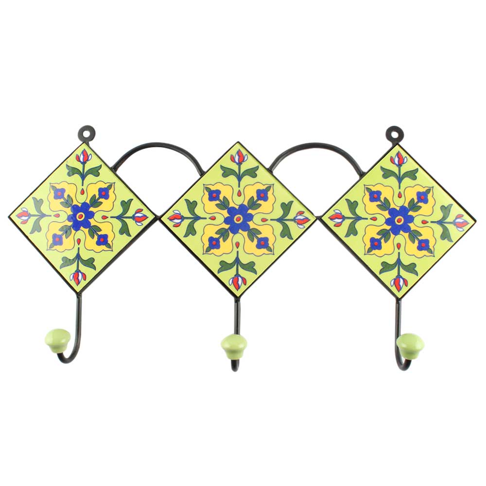 Navy Blue Flower Ceramic Tile Hook. When Put on Wall or Cabinet It is An Art in Itself. The Metal Part of this Hook is Black Powder Coated.