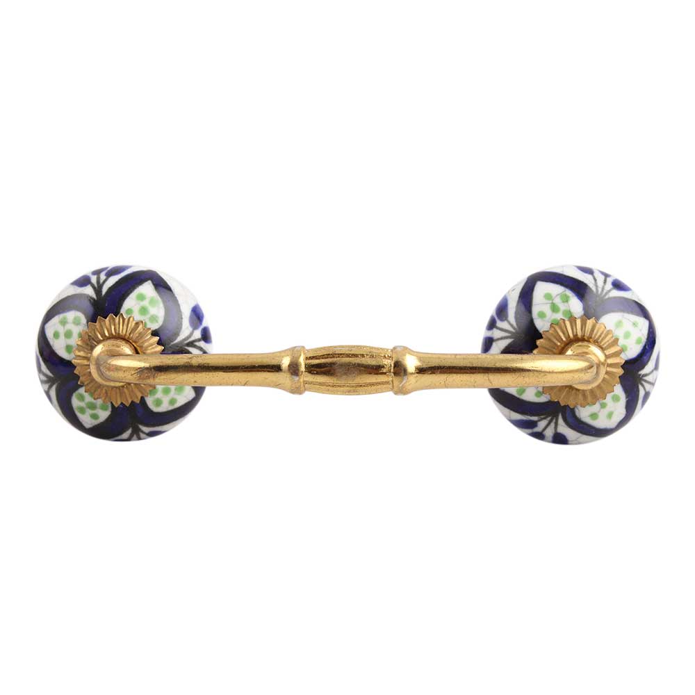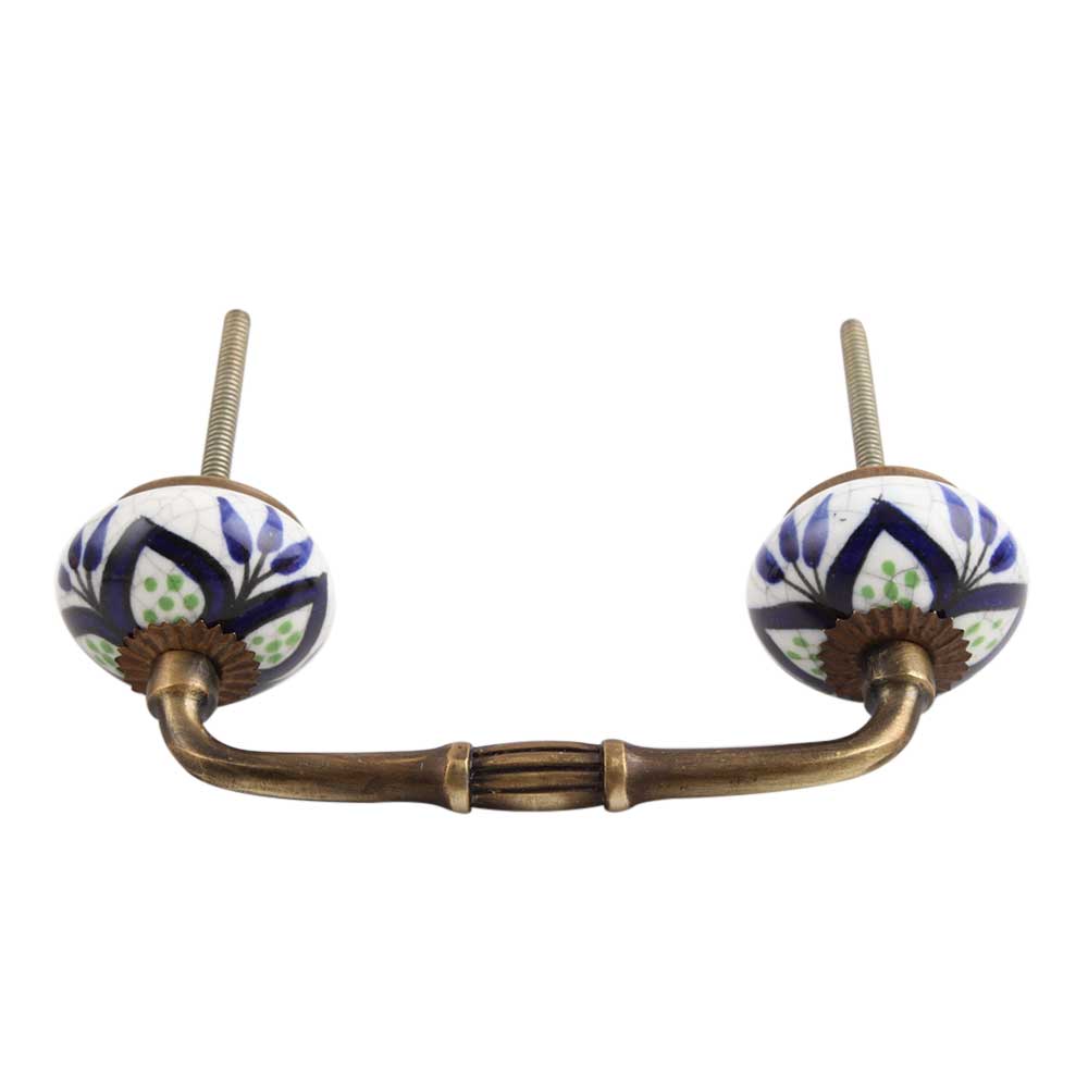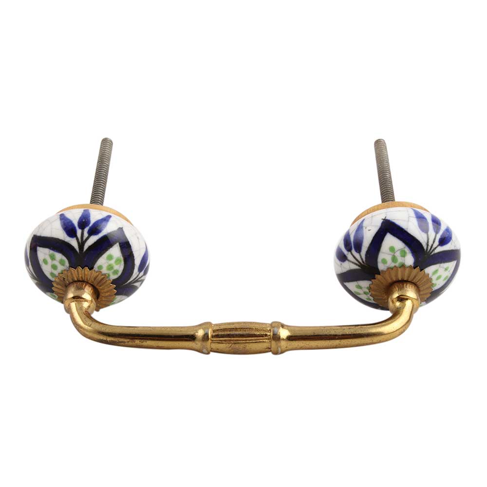Navy Blue Flower Crackle Ceramic Bridge Handle. Ideal for Drawer, Dresser, Cabinet, Wardrobe, Cupboard and Almirah.