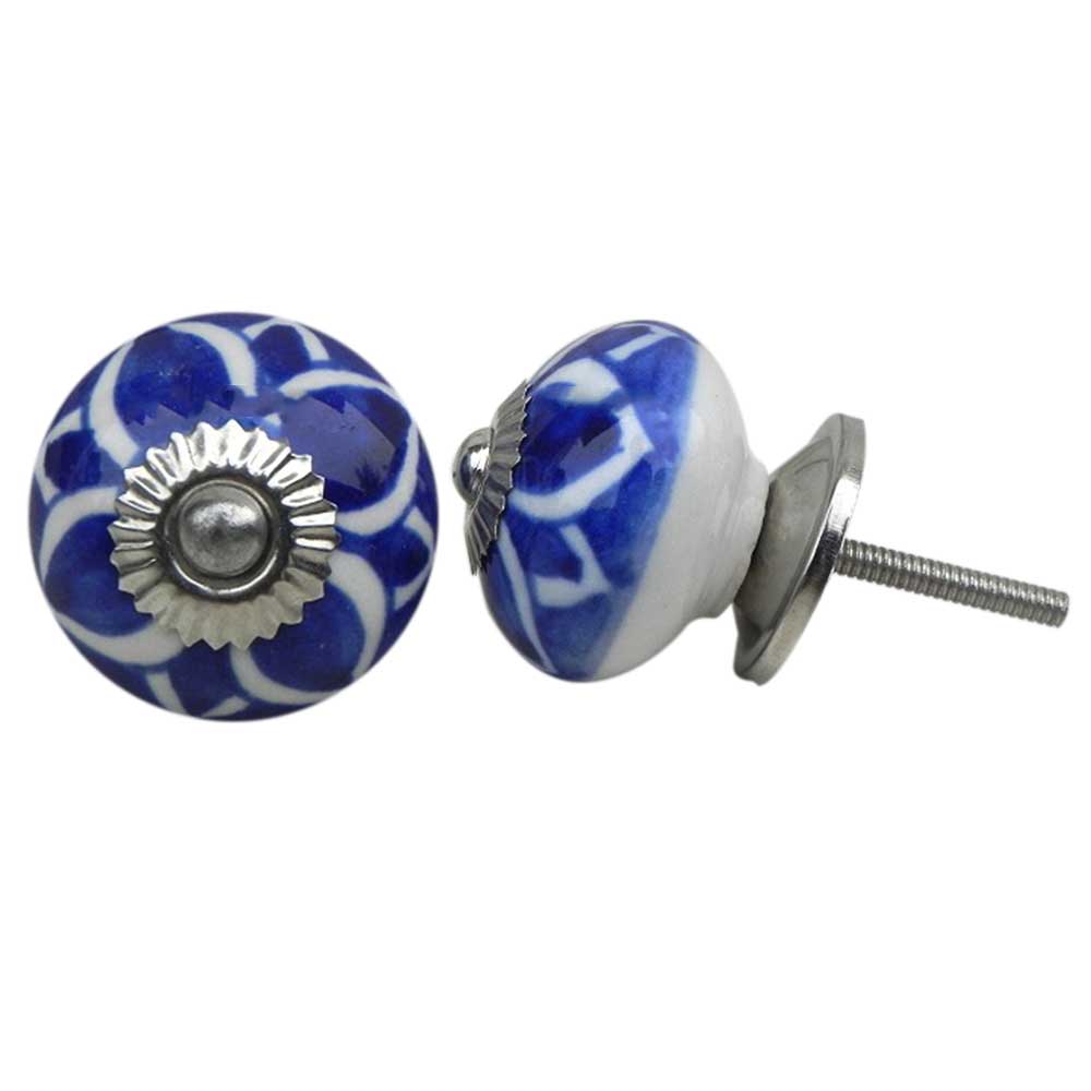 Navy Blue Flower Ceramic Knob. Ideal for kitchen cabinets, kitchen drawers, dining room, bed room, chest drawers, dressing tables, almirah