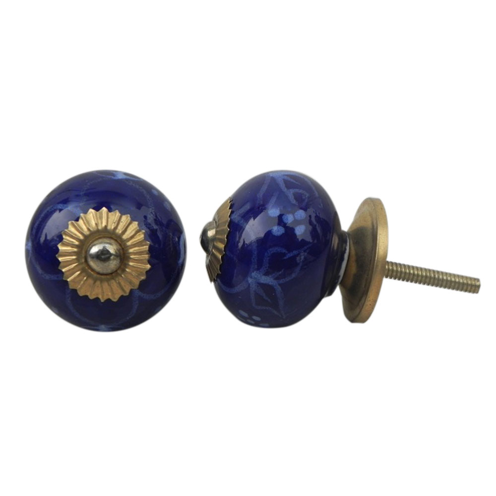 Navy Blue Flower Ceramic Knob. Ideal for kitchen cabinets, kitchen drawers, dining room, bed room, chest drawers, dressing tables, almirah