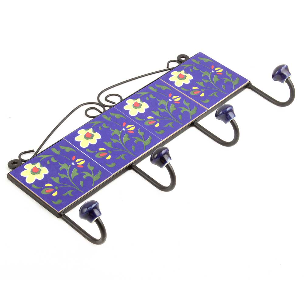 Navy Blue Green Leaf Tiles Hooks .When put on wall or cabinet it is an art in itself. The metal part of this hook is black powder coated.