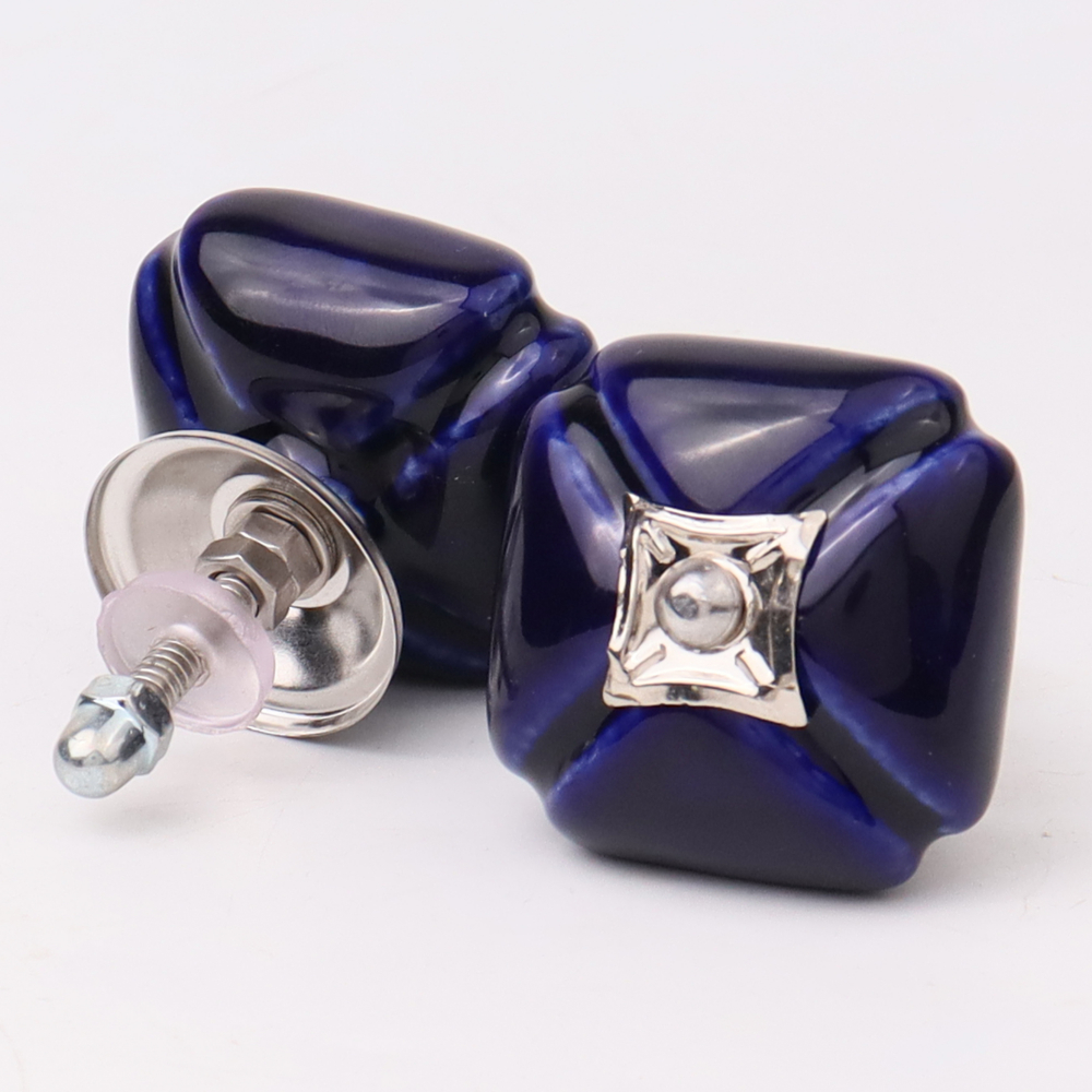 Navy Blue Handmade Ceramic Square Cabinet Knob