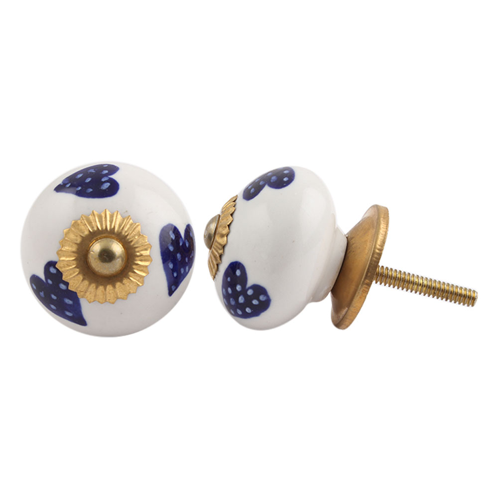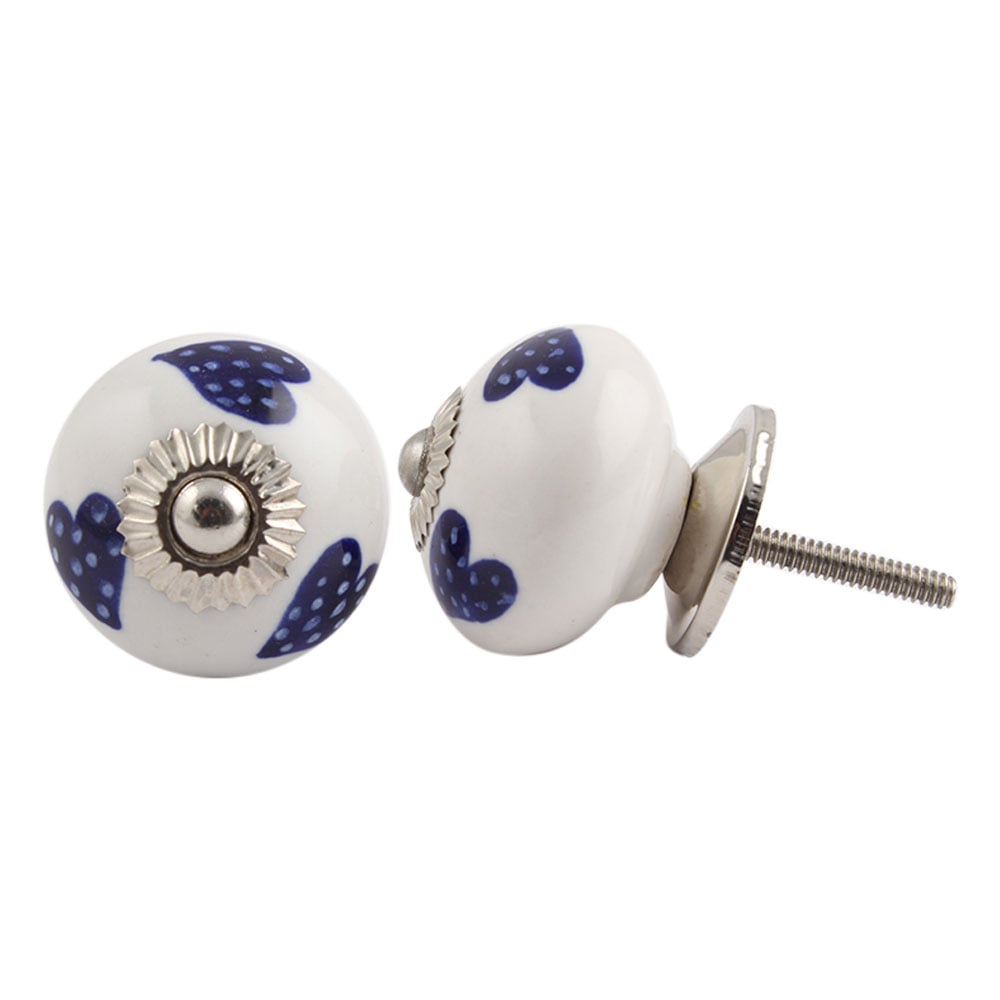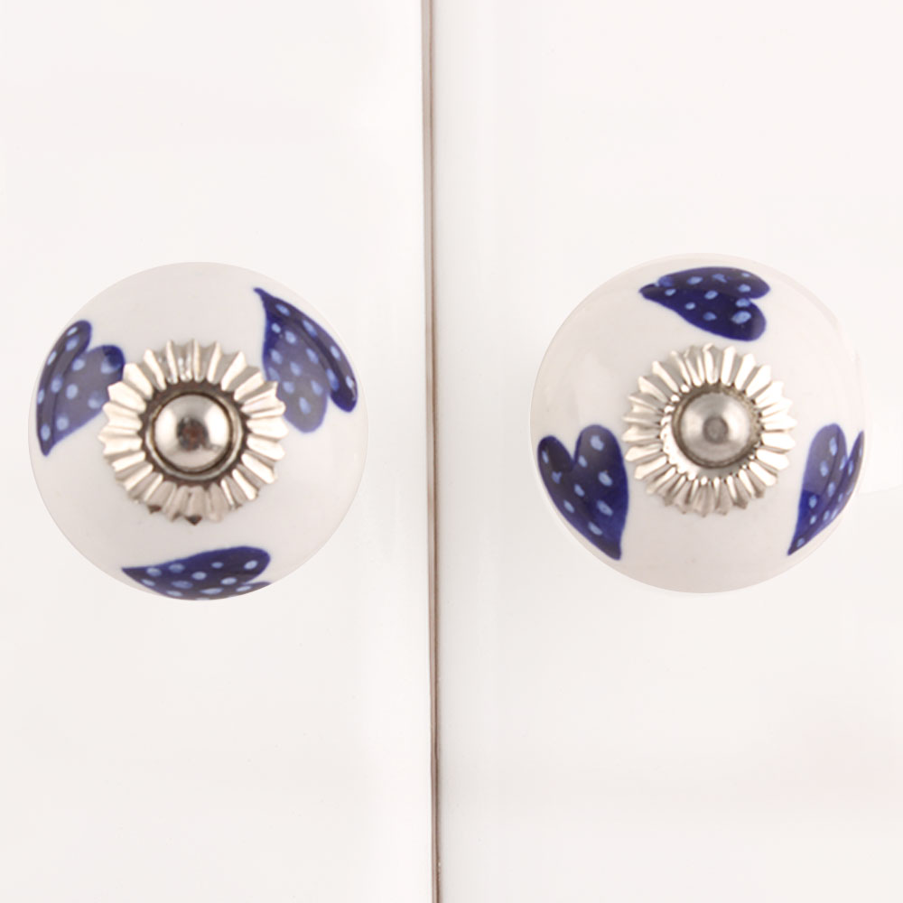 Navy Blue Heart Ceramic Round Knob. Ideal for kitchen cabinets, kitchen drawers, dining room, bed room, chest drawers, dressing tables, almirah