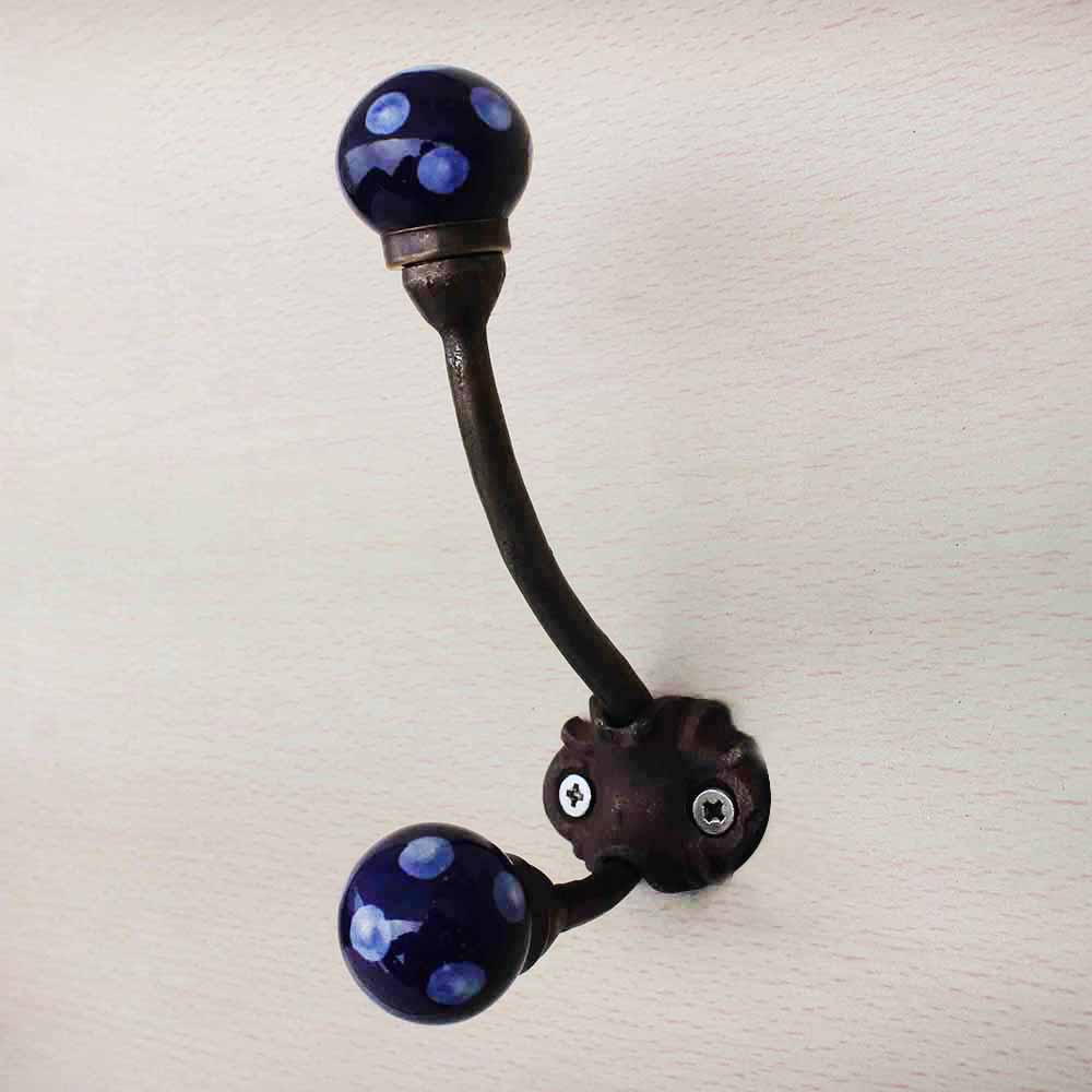 Navy Blue Iron Hook-Ehg-16. When Put on Wall or Cabinet It Gives A Sturdy Look. This Hook is Strong Enough to Hold Your Cloths, Keys, Tea Cups, Coffee Mugs, Hand Towels Etc.