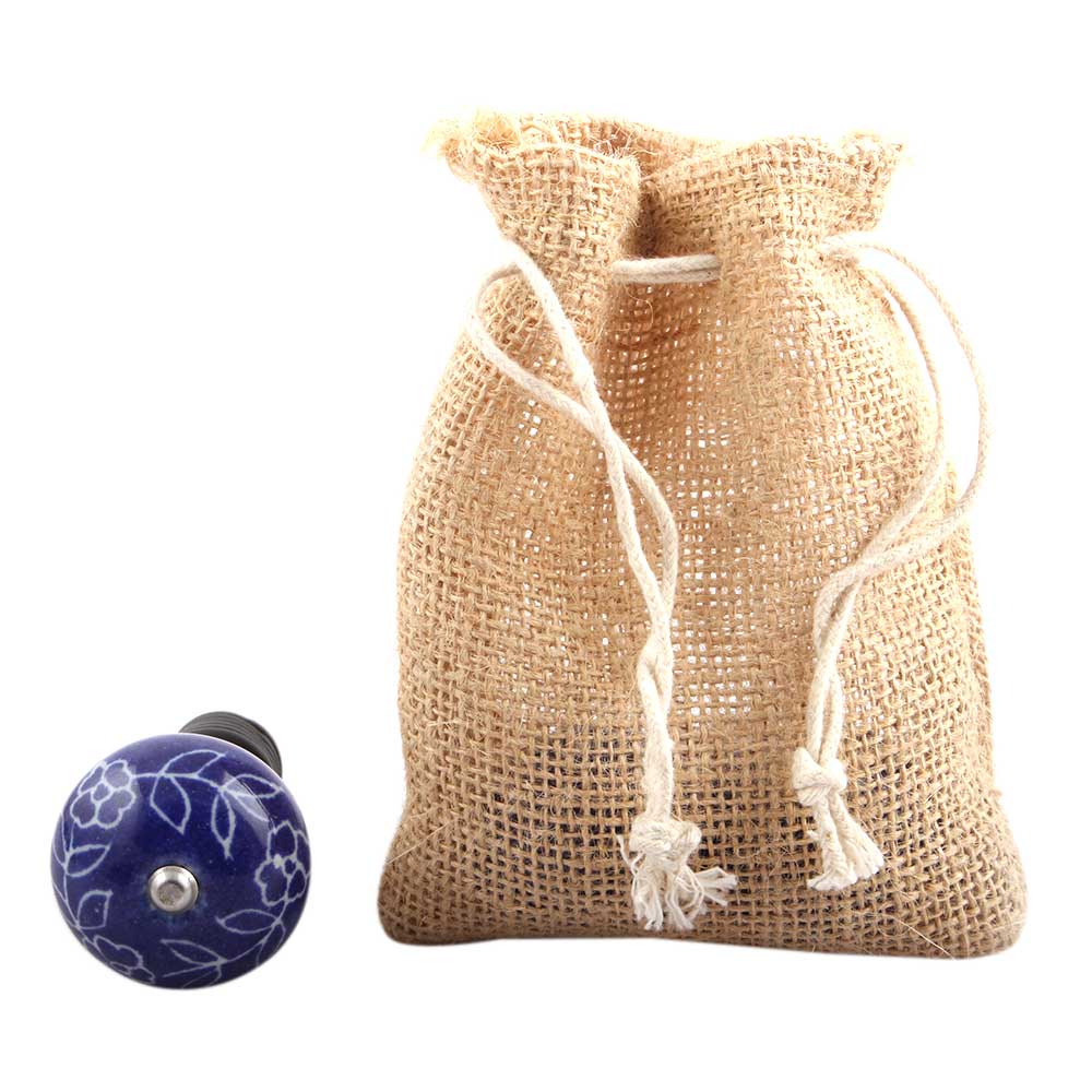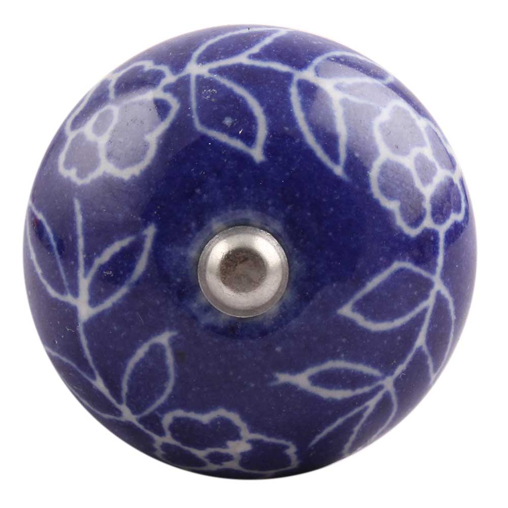 Navy Blue Leaf Floral Ceramic Wine Stopper